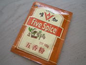 最近、わたしの中で流行っている。中国のスパイスミックス。その名のとおり、5種類のスパイスが混ぜ合わさっている。八角(アニス)・花椒・肉桂(シナモン)・丁子(クローブ)そして陳皮(みかんの皮)。なんとも健康に良さそうなスパイスたちではないか!殺菌作用があるので、風邪の予防にもいいかもしれない。冷え性にも効果がありそうだし。。。最初はどうやって使ったらいいのかわからなくて、使いすぎて、ちょっと気持ち悪くなったりもしたり、、、今のお気に入りは、豚ばら肉で塩豚を作って五香粉をほんの少しすり込みしばらく置く。厚めにスライスして、テフロン加工のフライパンに油を引かずにこんがり焼く。豚の油がたくさん出てくるので、余分な油は捨てる。好みの野菜(ニンニクの芽やチンゲン菜等がお勧め)と合わせて炒める。簡単でおいしい。ご飯もすすむ。五香粉、いいですよ。使ってみてください。