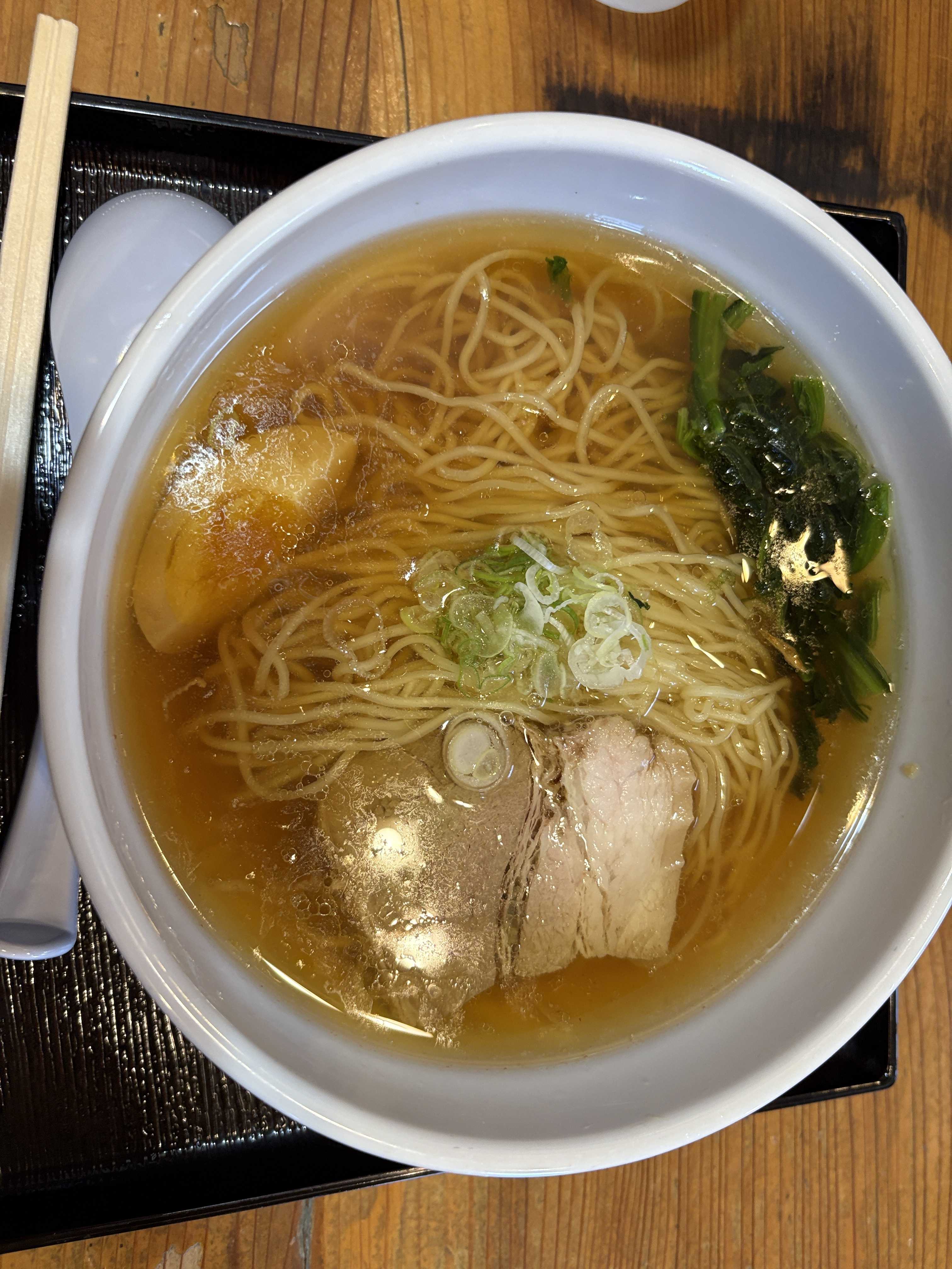 外食にほとんど出かけない父が、ラーメンが食べたいと言った。何でもテレビで最近観た、とんこつラーメンがとても美味しそうだったとか。久しぶりに外に食べに行こう!となって子供と一緒に車で10分ほどのラーメン屋さんへgo!私は友達と外食するならお寿司か洋食やさんに行くのでラーメン屋さんにはほとんど行ったことがない。近くにあるお店なのに初めて訪れました。残念ながらとんこつラーメンはありませんでしたが醤油、味噌、塩ラーメンと各種ありました。父は味噌ラーメンを注文しました。写真のラーメンは私が食べた、鶏だしたっぷりの醤油ラーメンです。煮卵もチャーシューも美味しい!麺は私好みで細くてスープはアツアツで、あっと言う間に食べ終えました!子供はスープまで飲み干す勢いでペロリといただきました。父はとてもゆっくり食べていたので、残してしまうかなと心配しましたが何とか完食出来ました。みんなで美味しくいただいて、幸せな時間でした🍜ごちそうさまでした😊持ち帰りの餃子も買い、家でいただきました!
