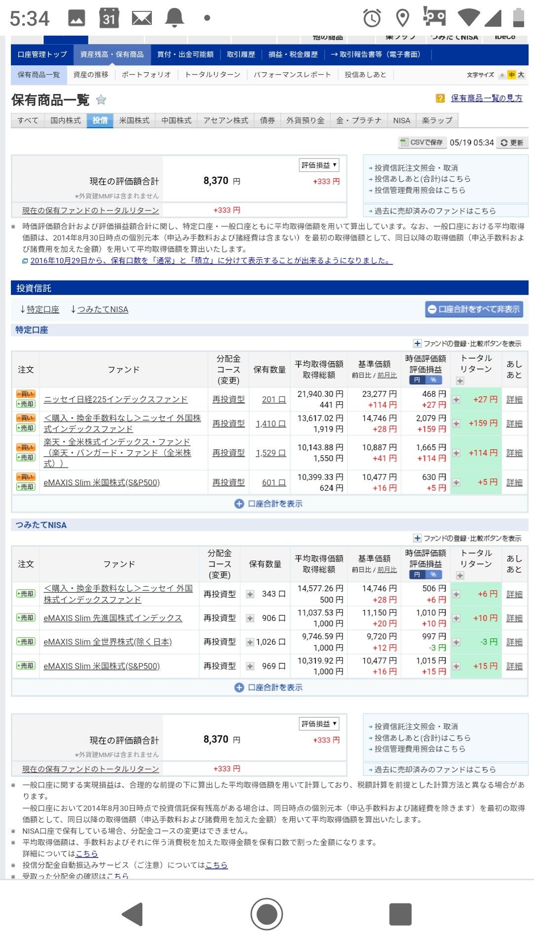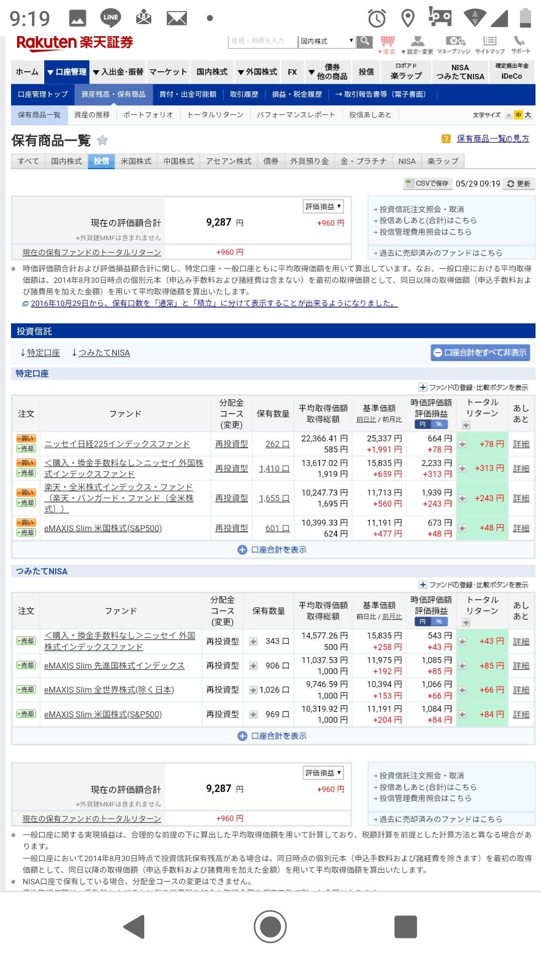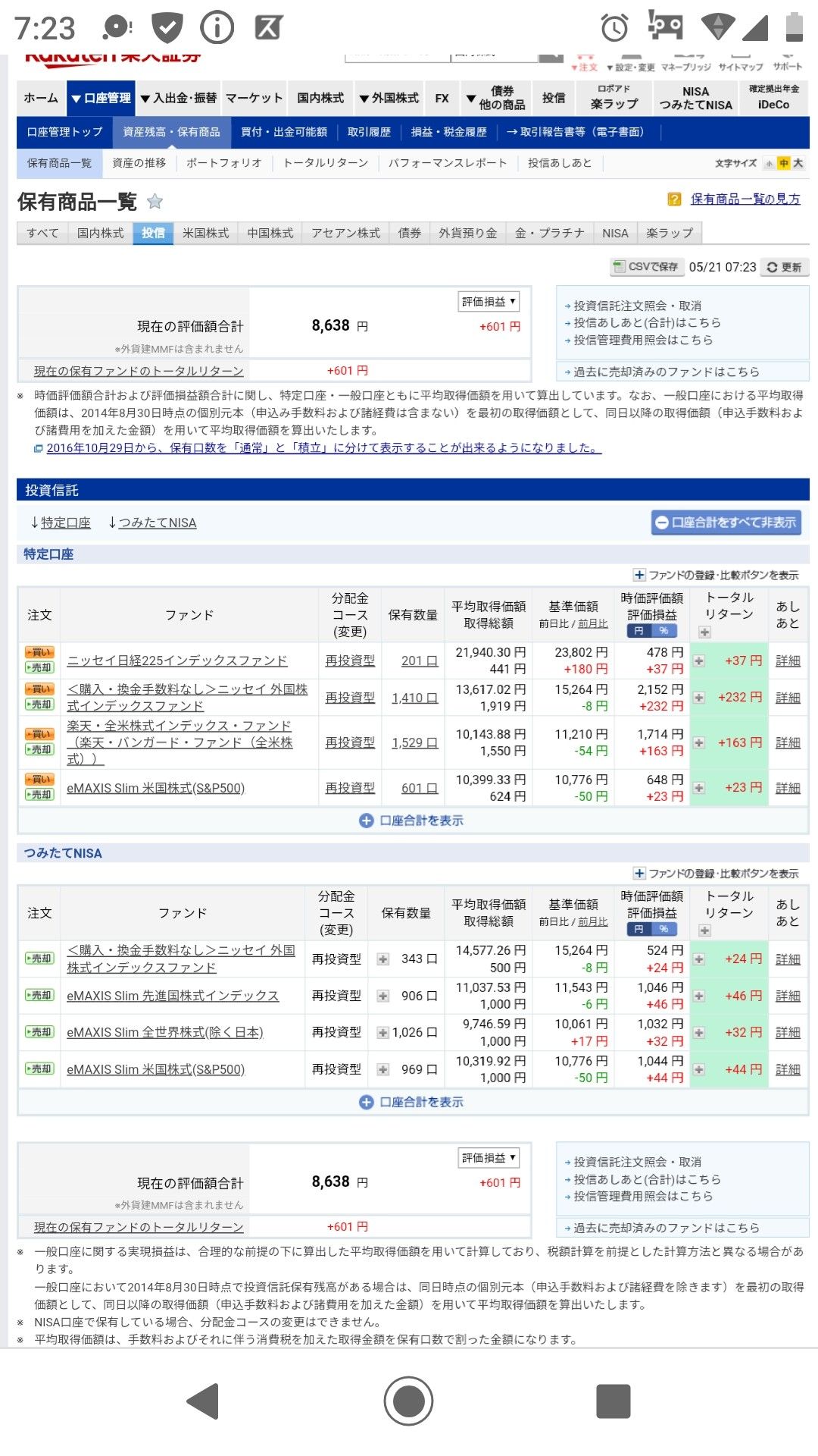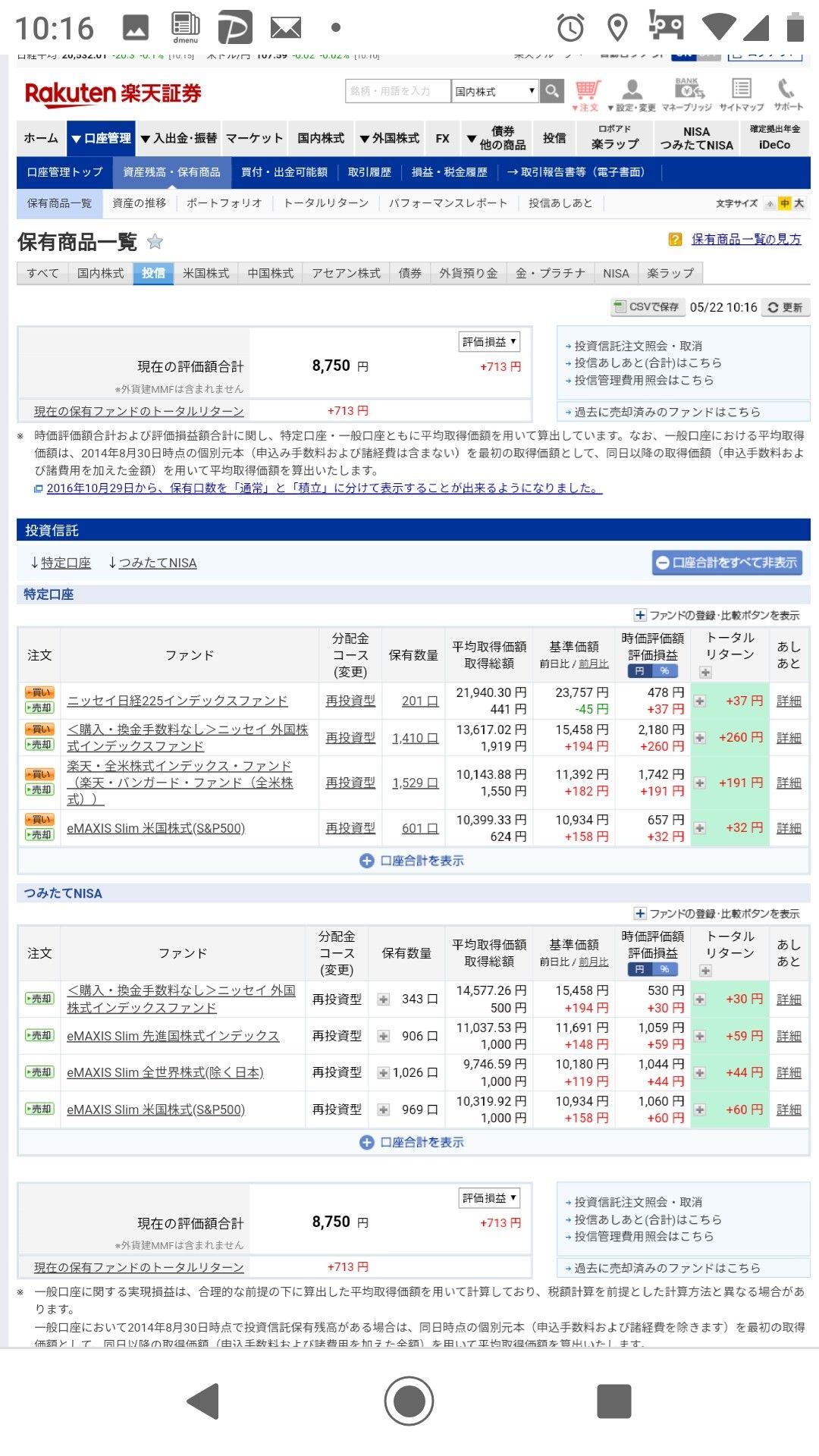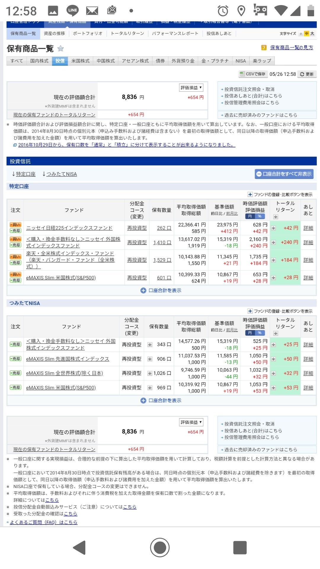 おはようございます 今回は、 eMAXIS Slim 米国株式(S&P500)を 278円追加購入しました。 全体的に下がってはいますが 評価損益が約8%です つみたてNISAも5月1日に カード決済で購入しましたが 今のところ反映されていないようです これからが楽しみです☆
