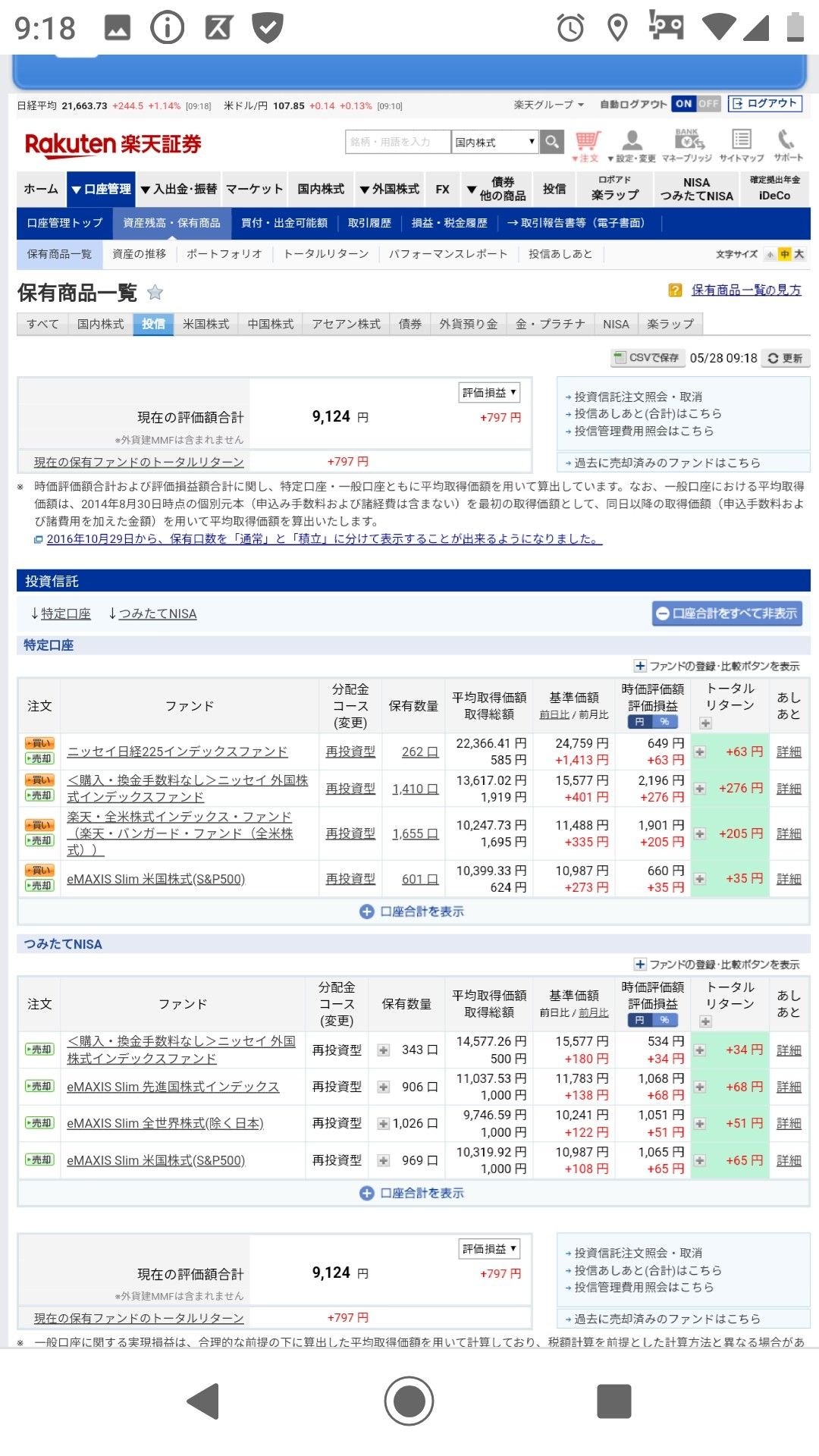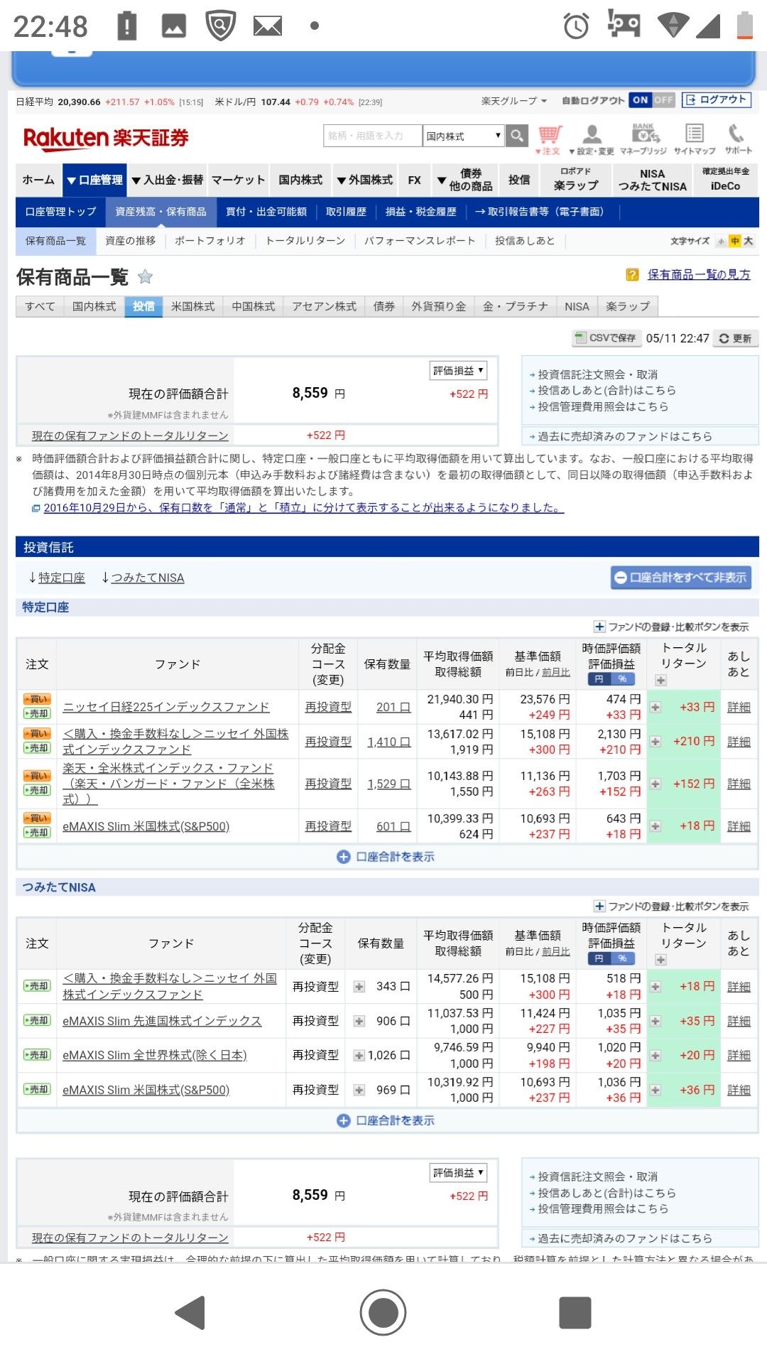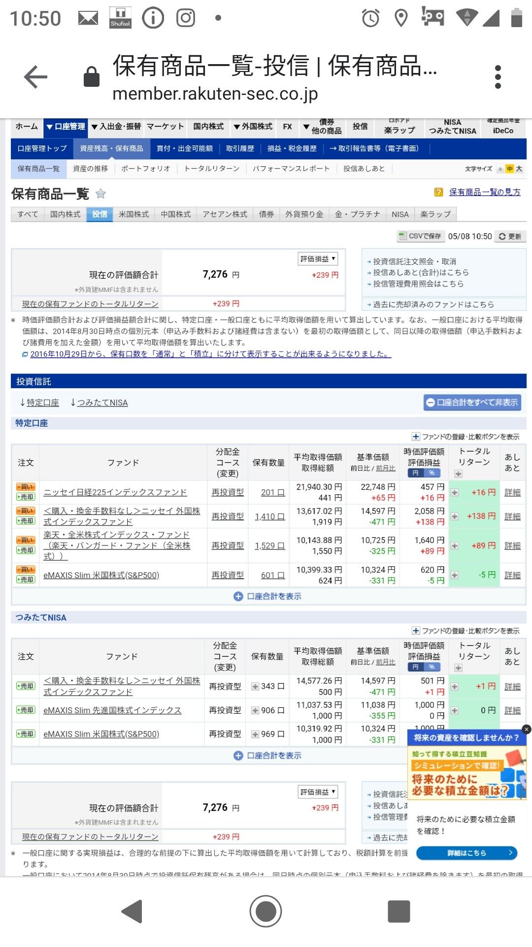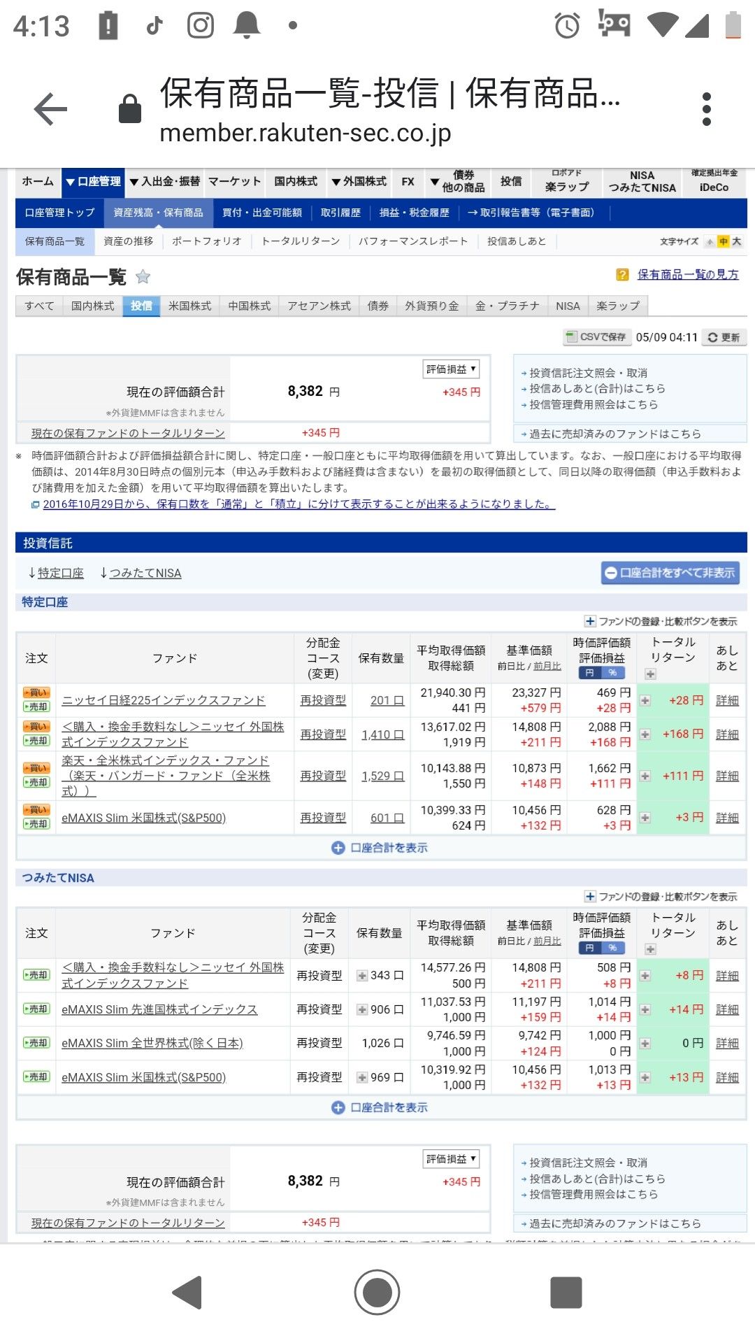 おはようございます 今回は、 eMAXIS Slim 米国株式(S&P500)を 278円追加購入しました。 全体的に下がってはいますが 評価損益が約8%です つみたてNISAも5月1日に カード決済で購入しましたが 今のところ反映されていないようです これからが楽しみです☆