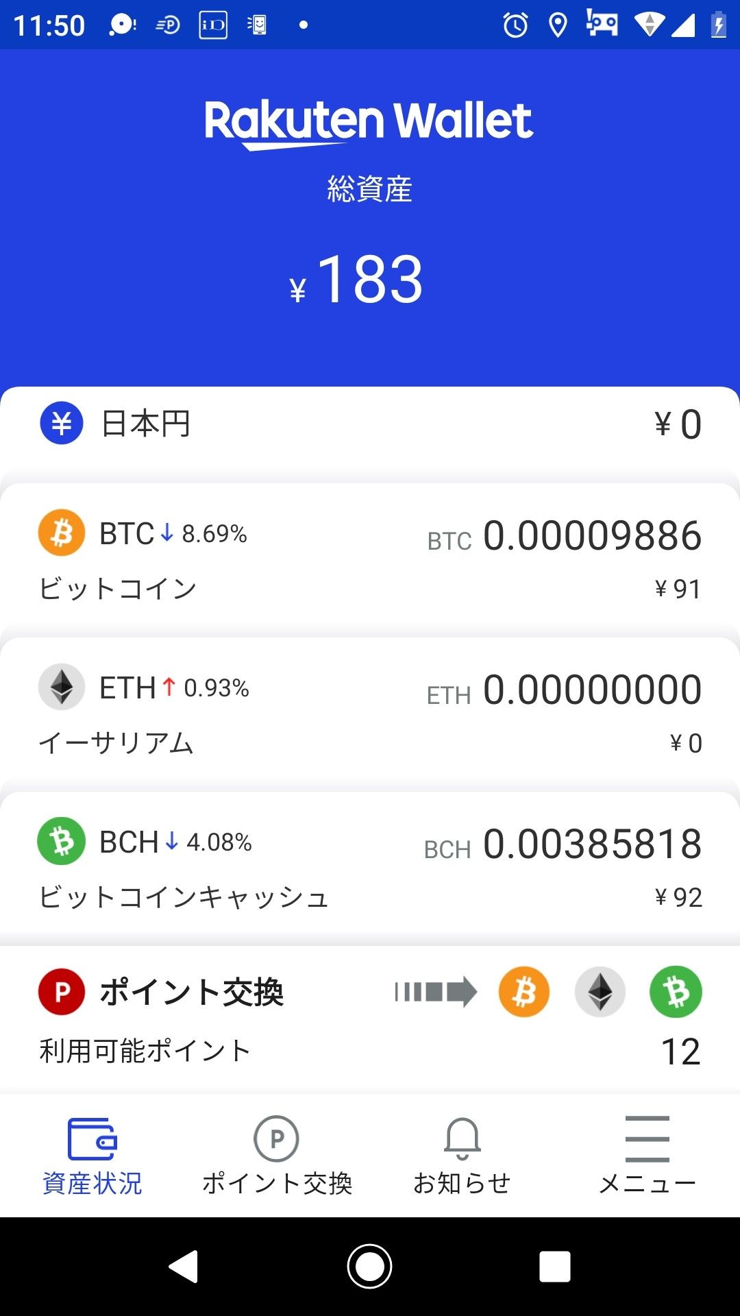 楽天ウォレットで仮想通貨取引に 使用できる楽天ポイント数は… 100ポイント からでした…参考までに!