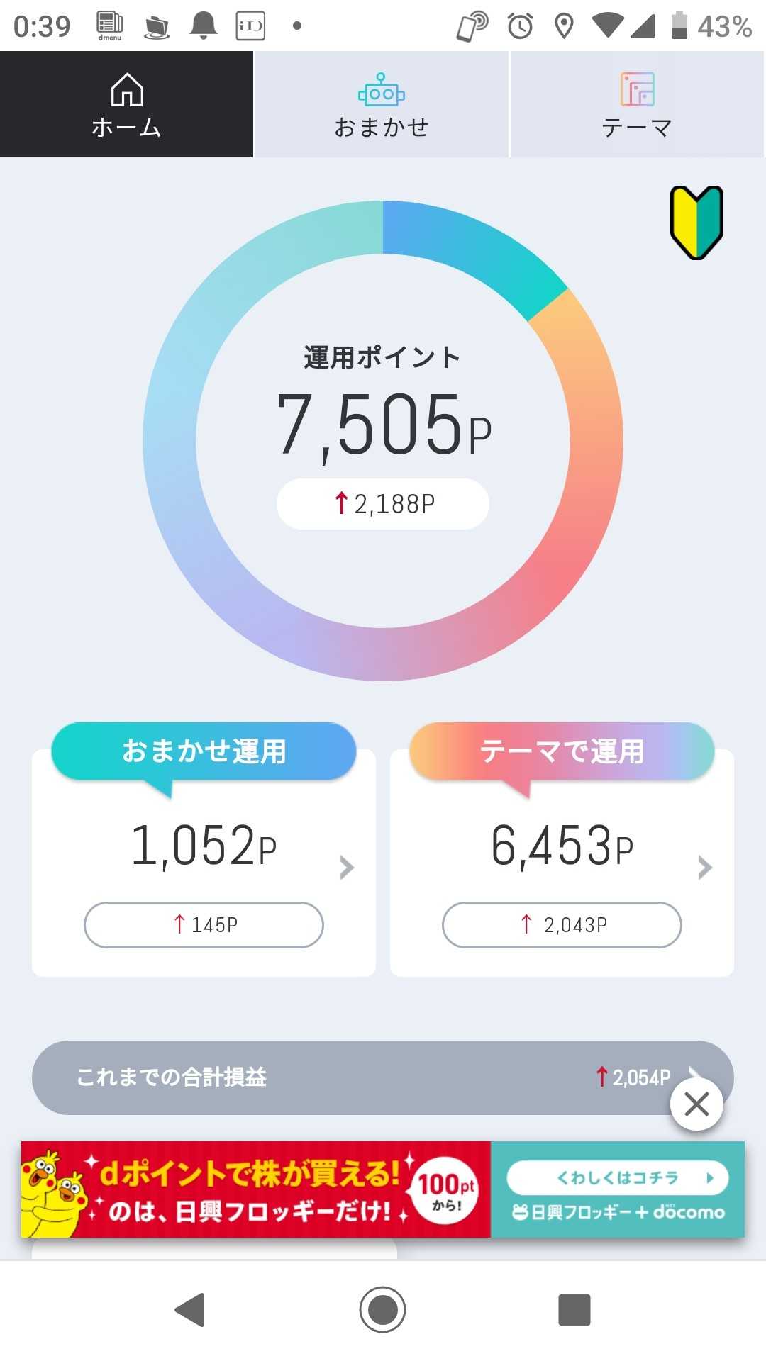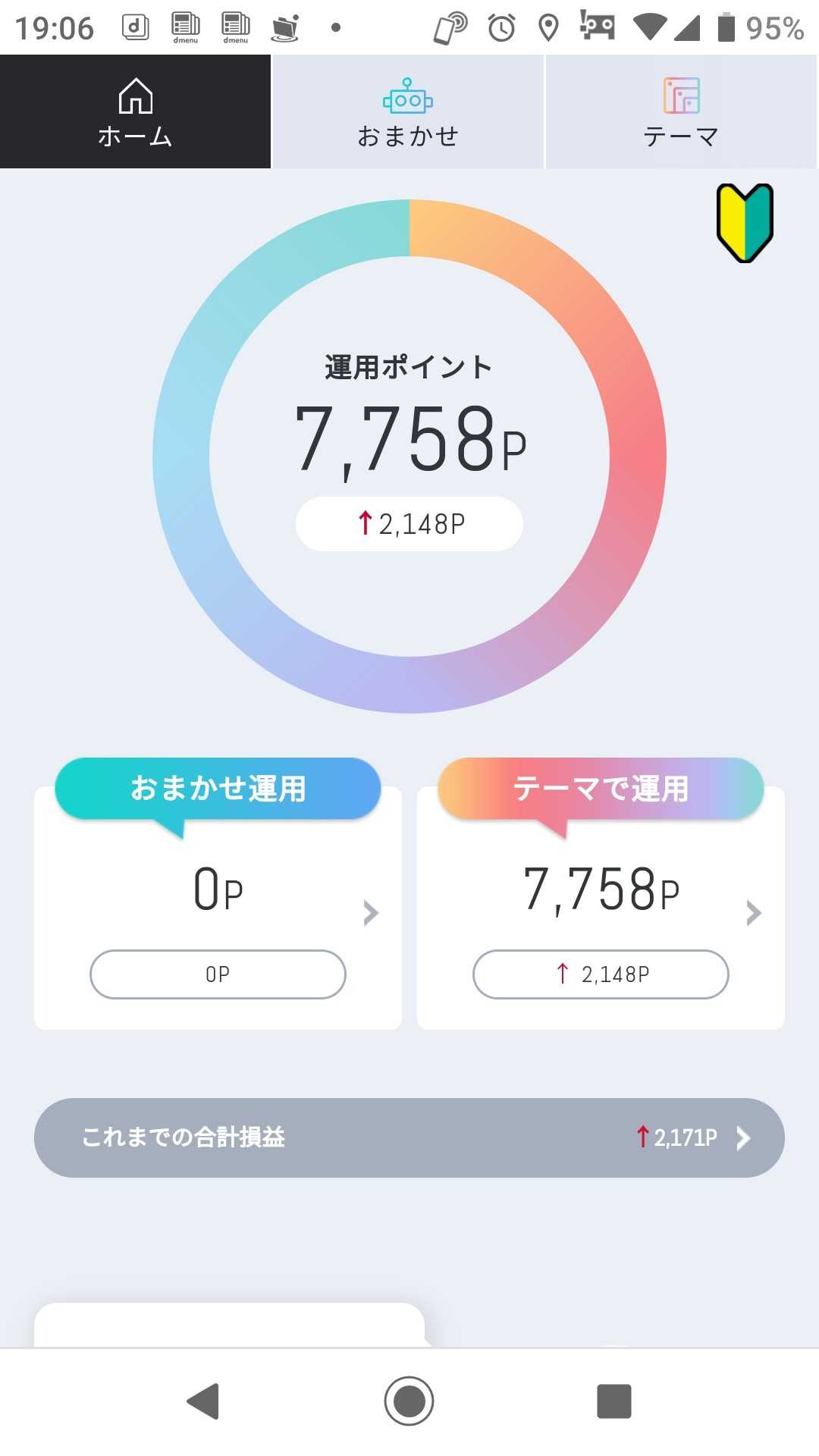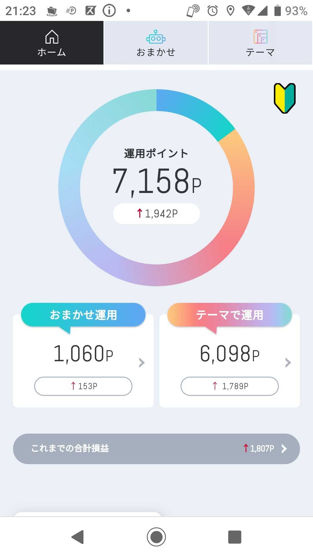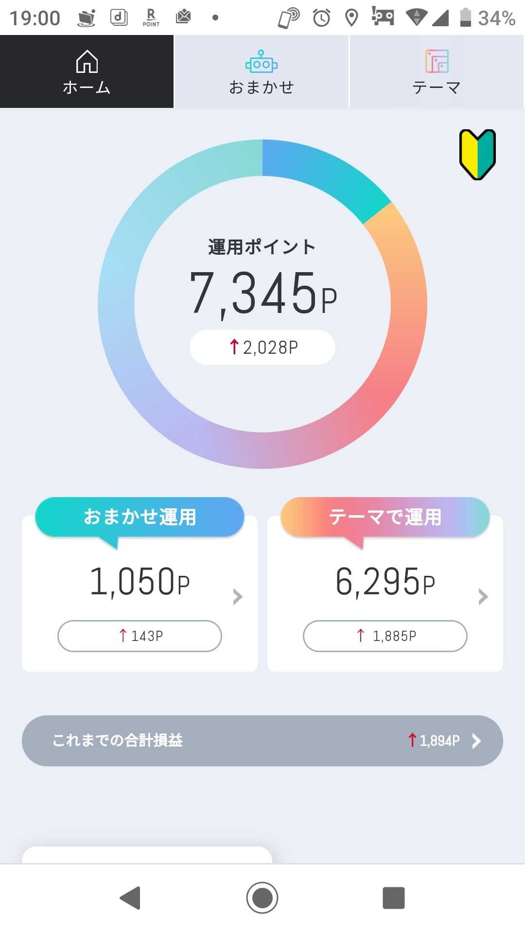 今日の結果です 近いうちに 「おまかせ運用」のポイントを テーマ株の「クリーンエネルギー」に 全ポイントを移そうと思います 1つのかごに 玉子を全部盛るなといいますが ポイント投資というのもあり 追加してみようと思います さてさて どうなるのか楽しみです(^ー^)