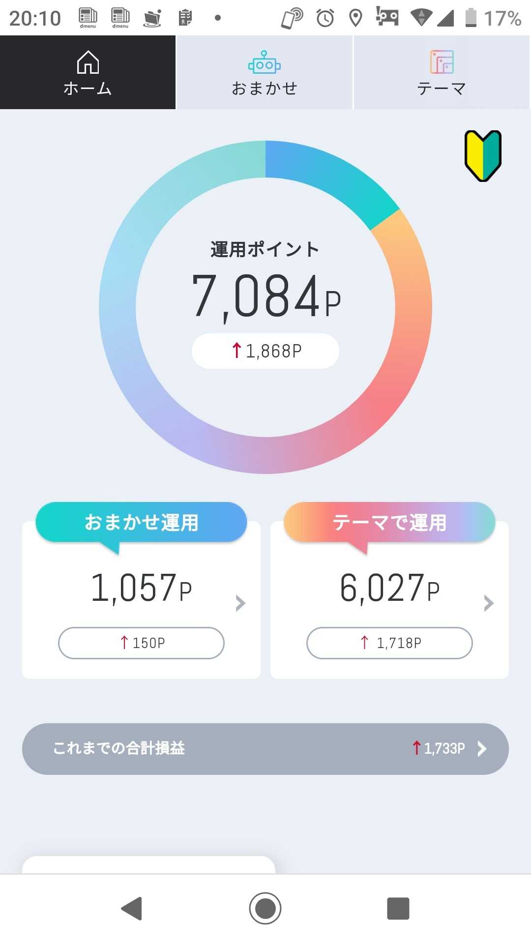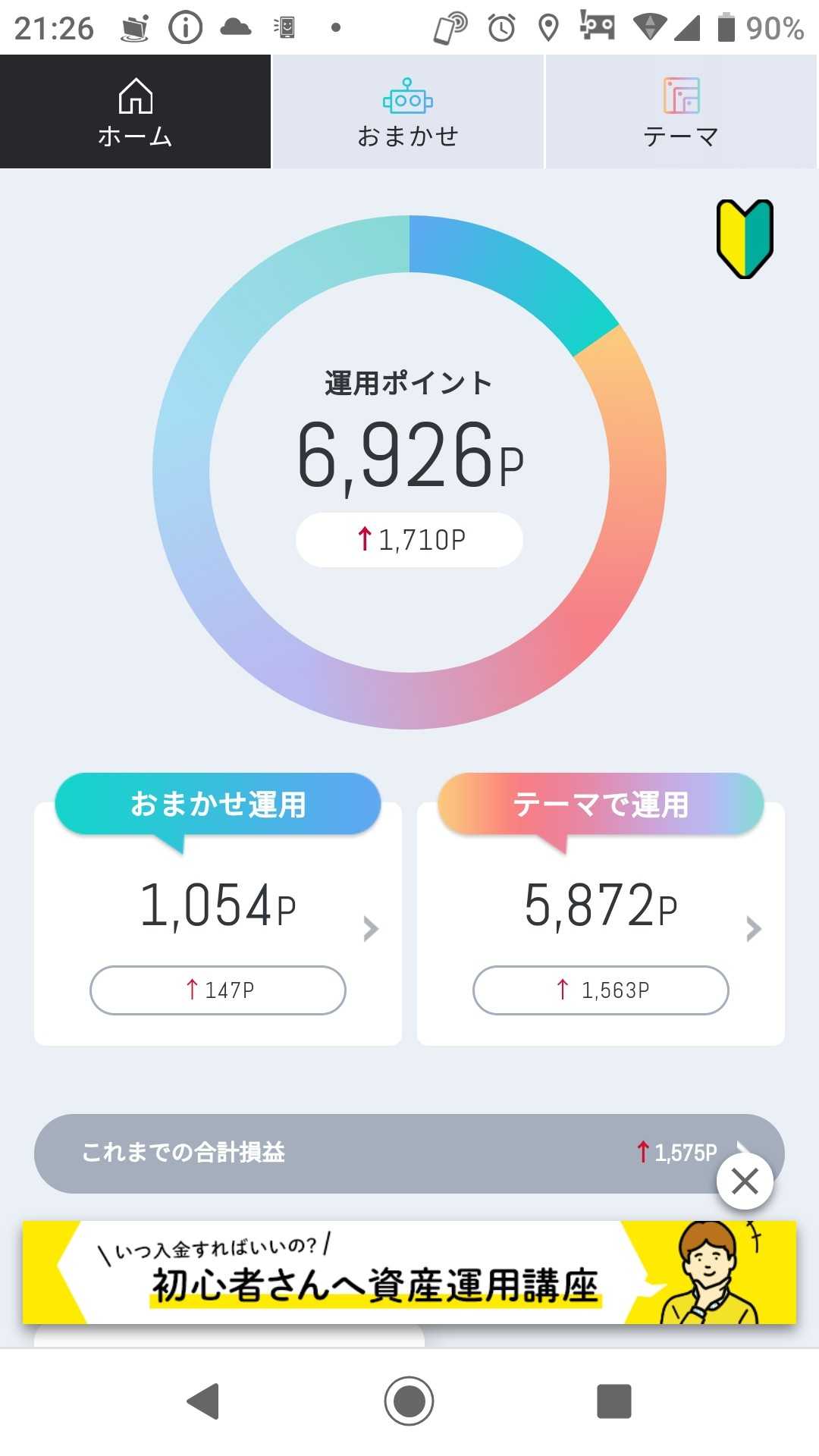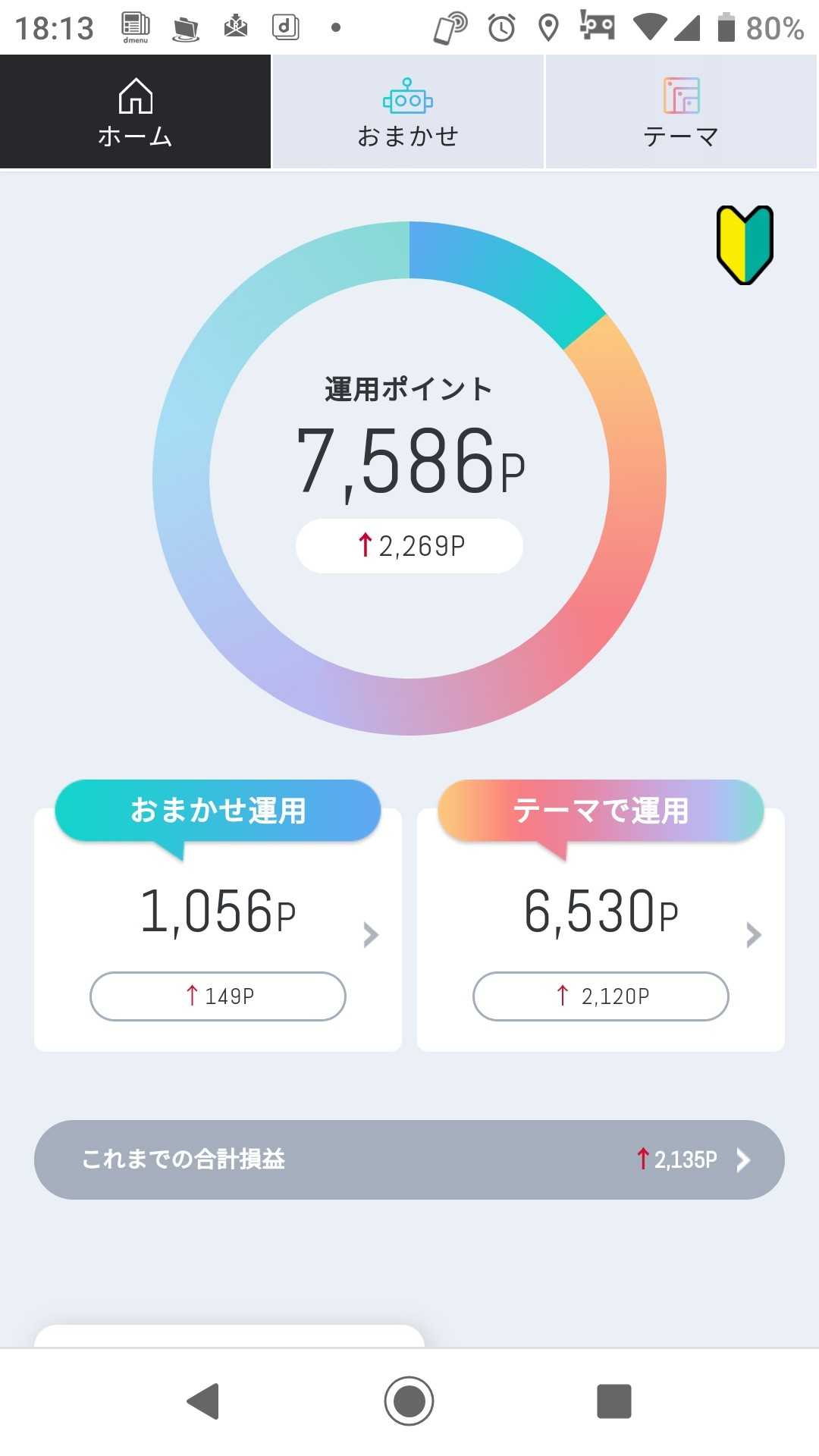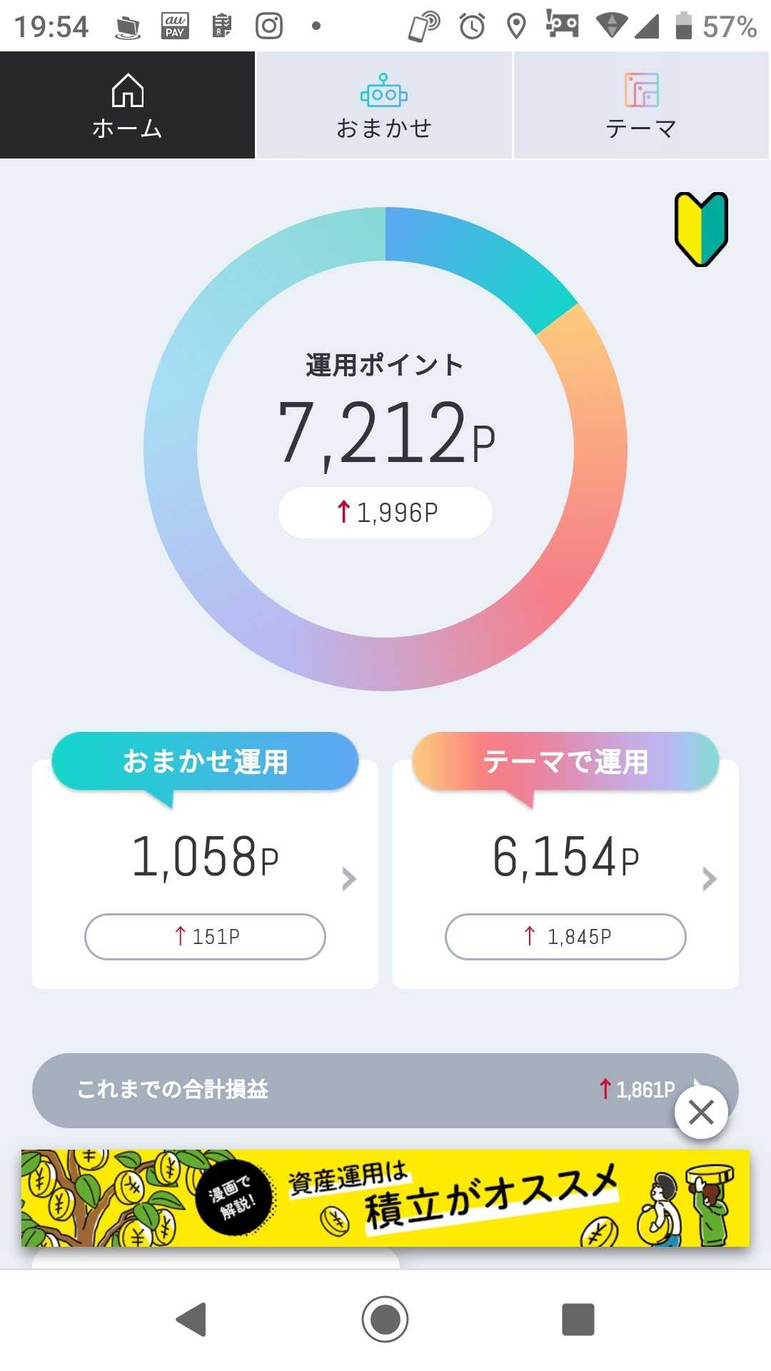 今日の結果です 近いうちに 「おまかせ運用」のポイントを テーマ株の「クリーンエネルギー」に 全ポイントを移そうと思います 1つのかごに 玉子を全部盛るなといいますが ポイント投資というのもあり 追加してみようと思います さてさて どうなるのか楽しみです(^ー^)
