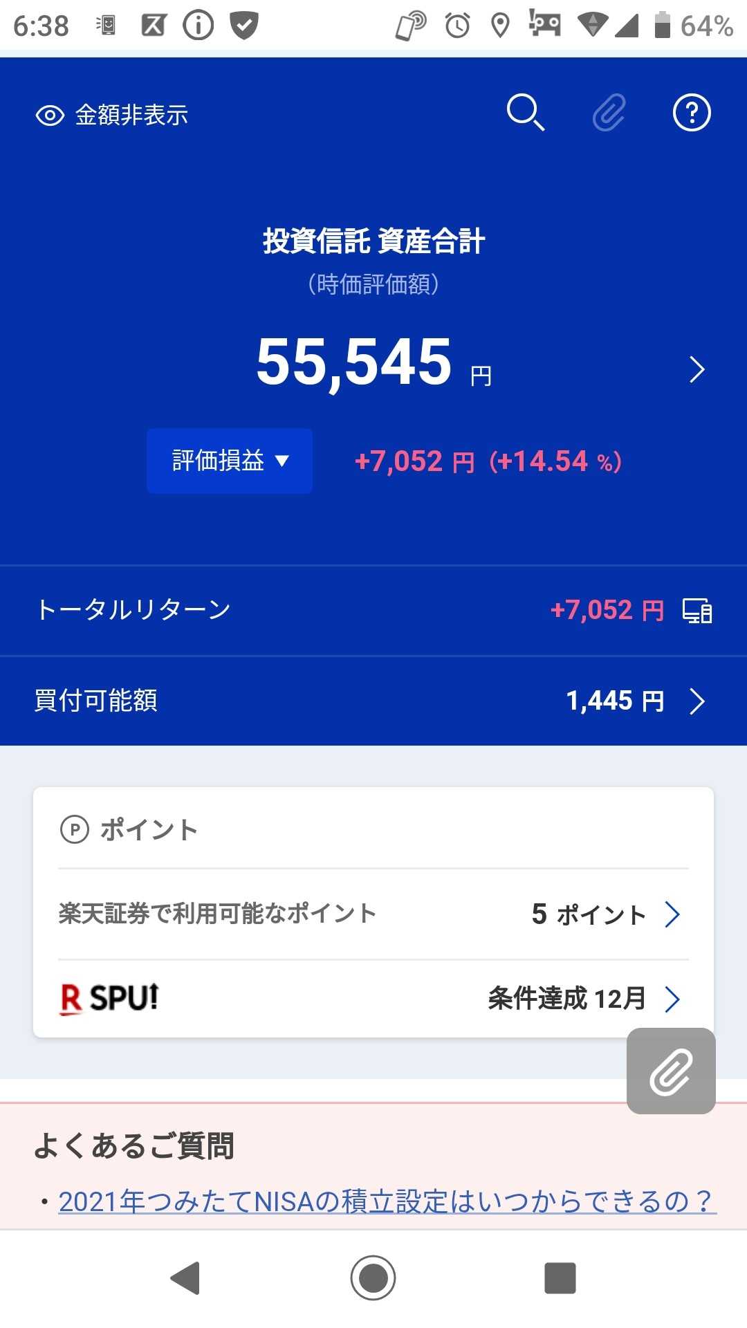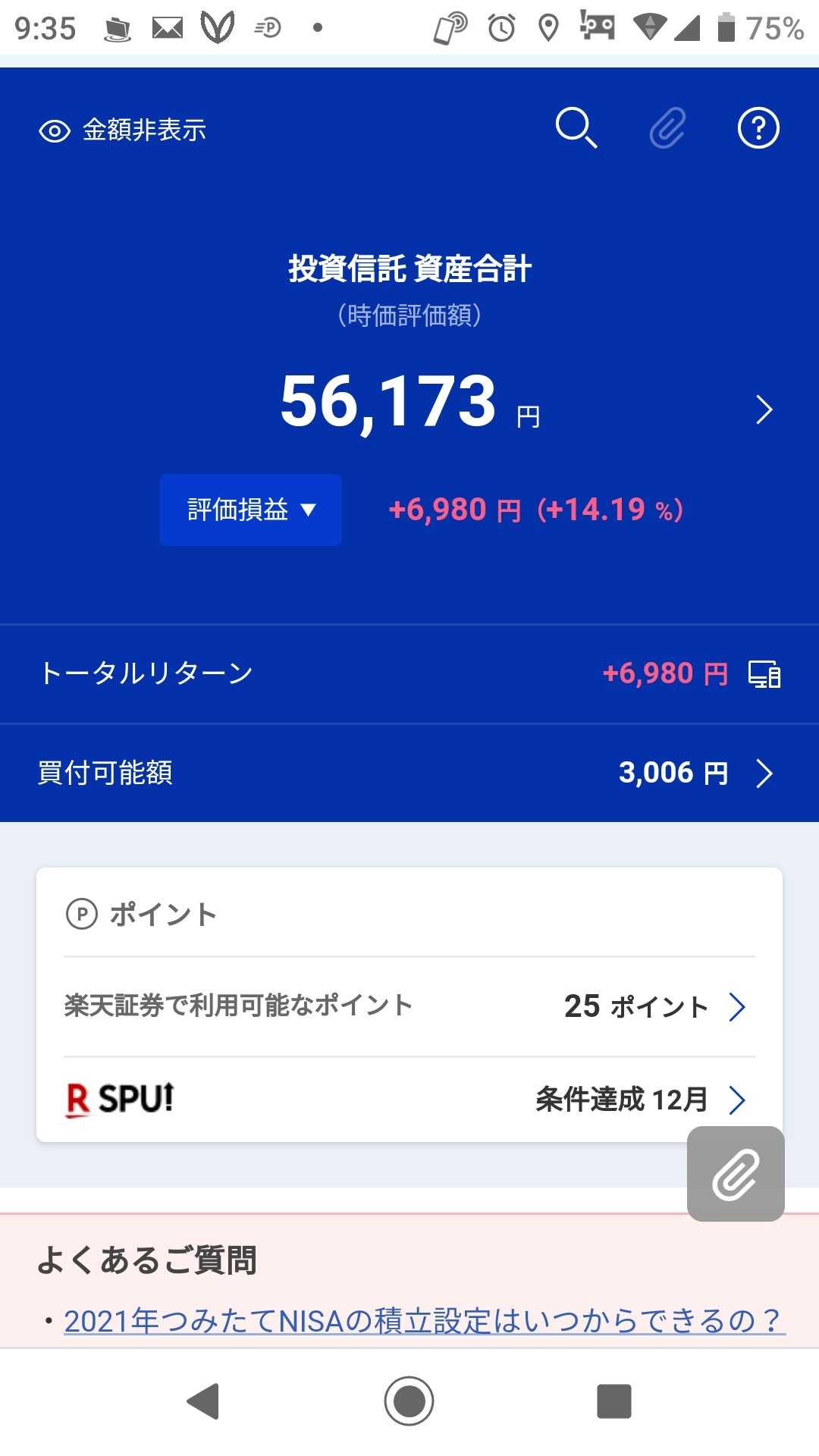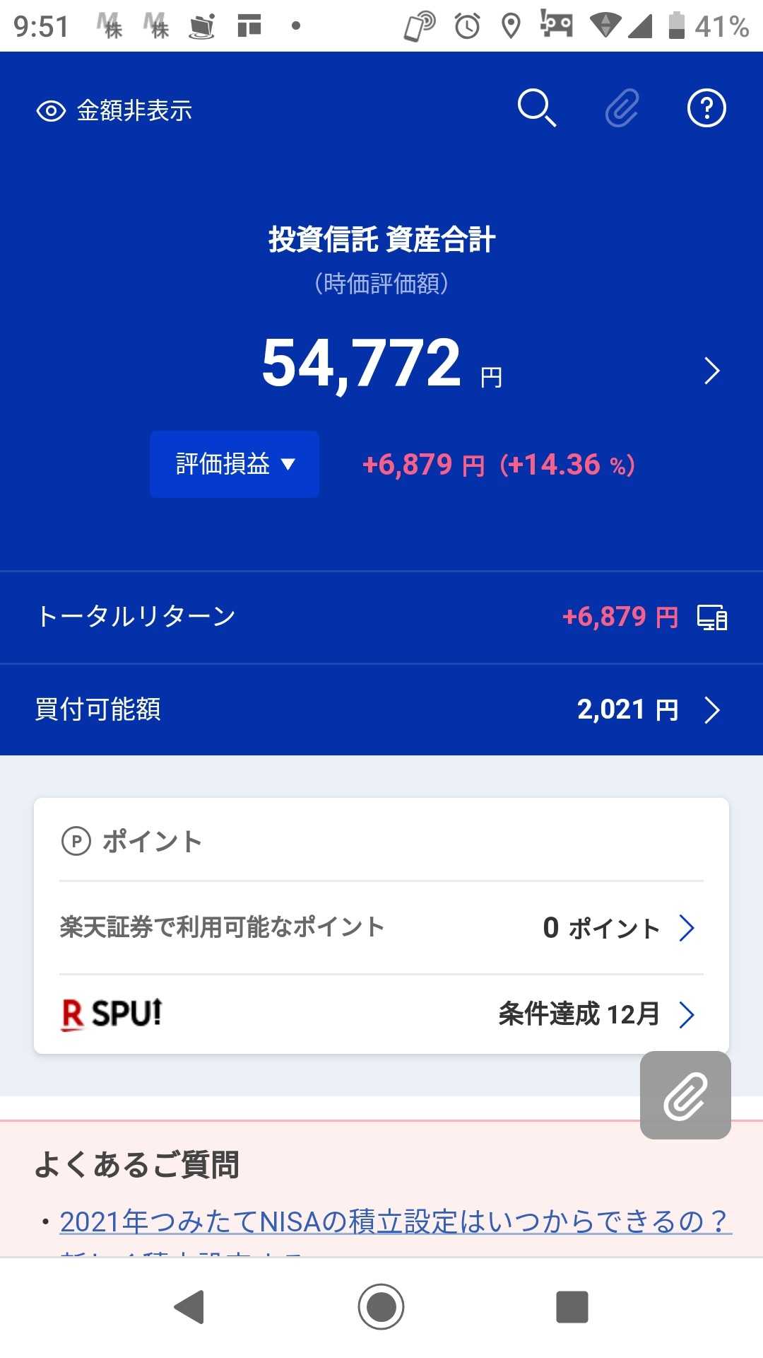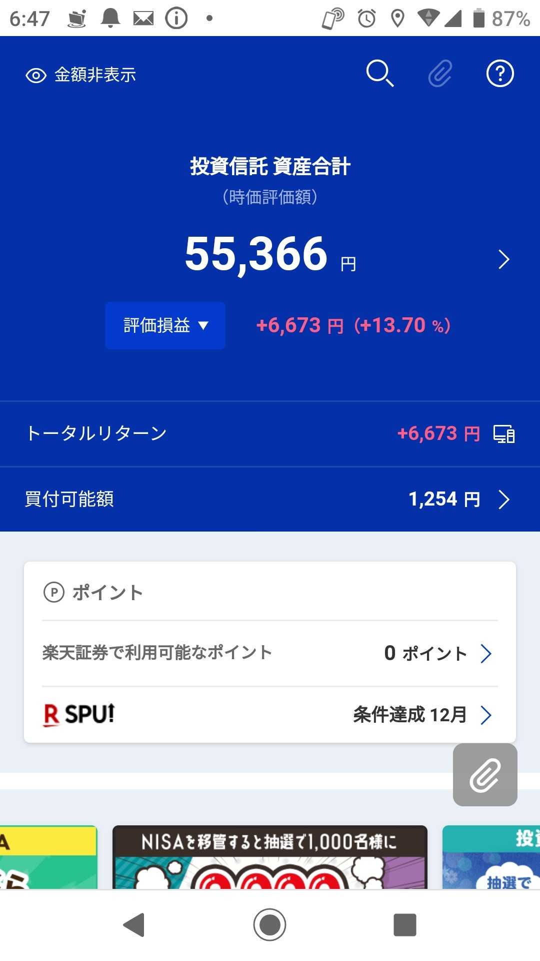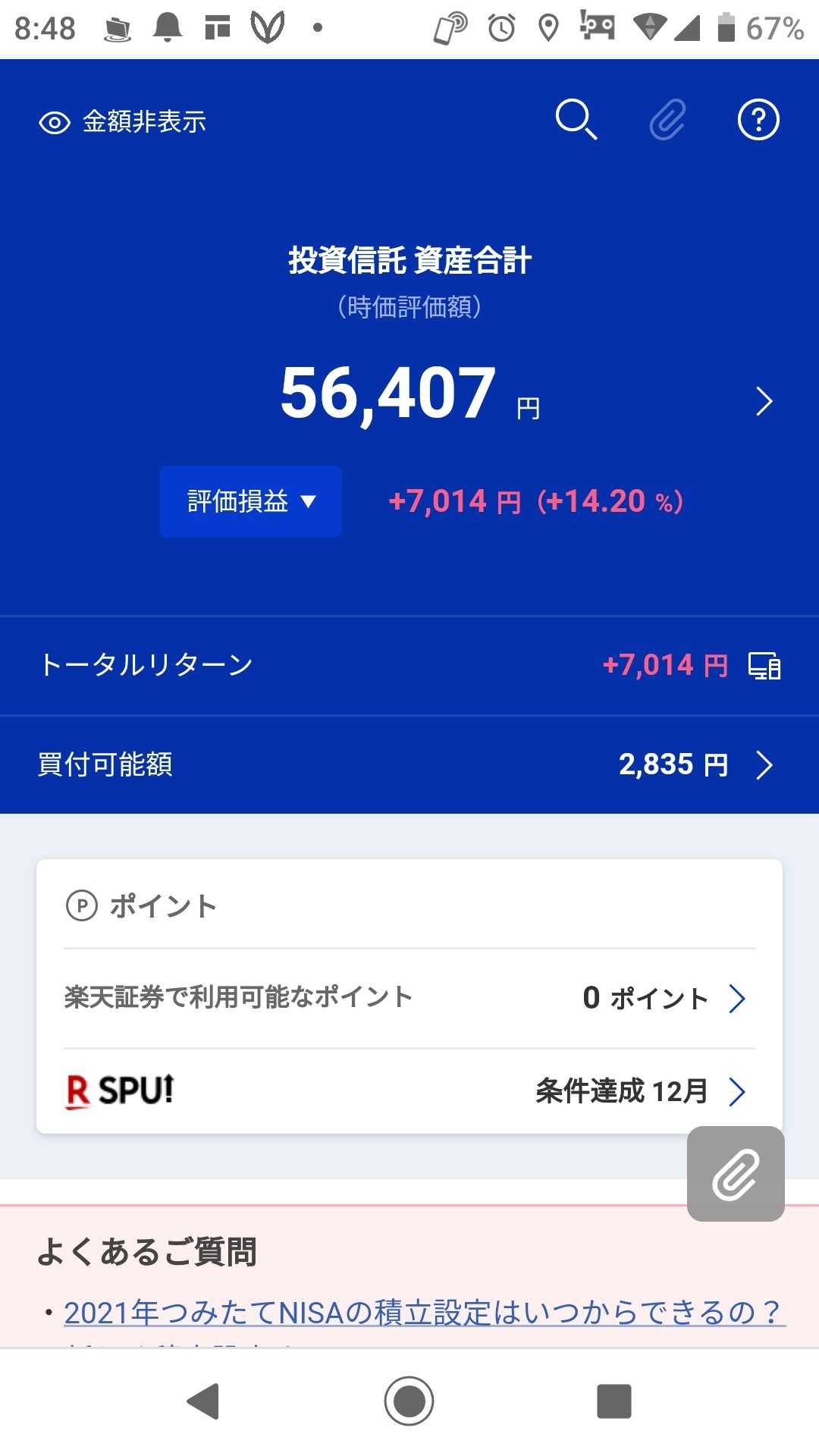 つみたてNISAのみの 評価損益は約11%でした ↓