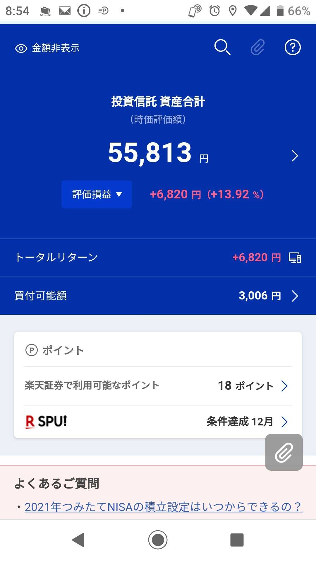 現在の結果です つみたてNISAだけの結果は 以下の通りです