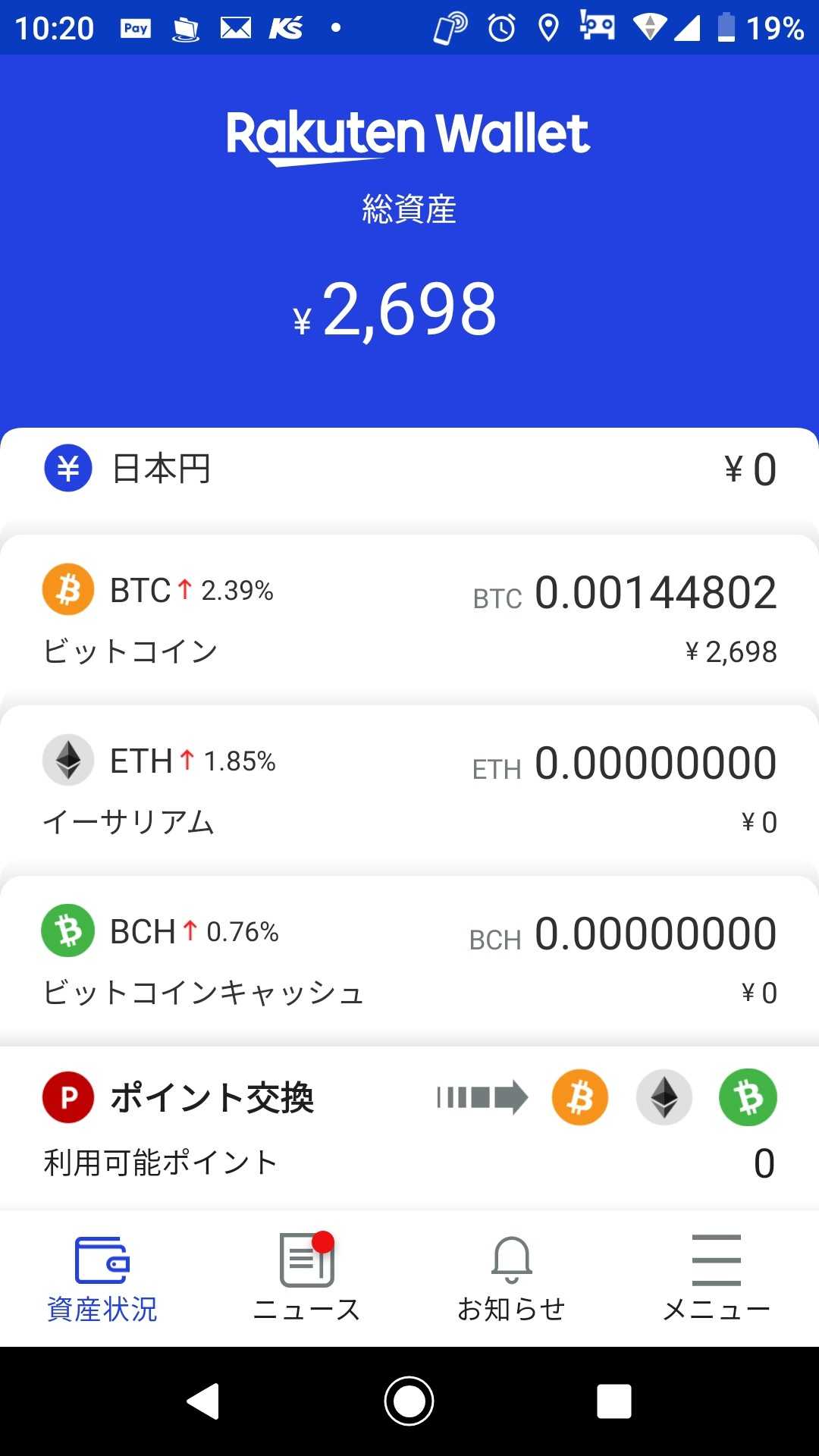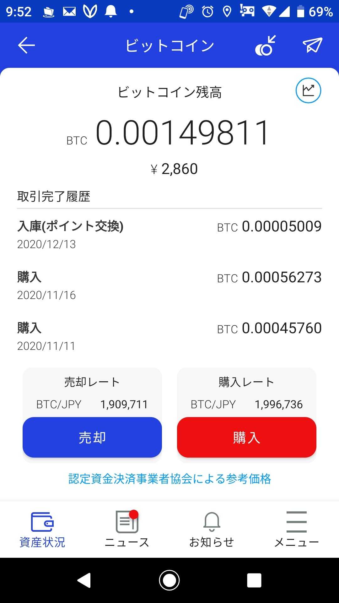 楽天カード利用で貯まったポイントで ビットコインを100ポイント追加しました 毎月、100ポイントだけでも追加できれば 良いかなと思ってます 仮想通貨の税金の仕組みを 知らなかったので 2020年は少し増えては 増えた分だけ売ったり ビットコインにまとめるために 売ったりしていたので 2021年は売らずに 本当にチリも積もれば精神で 買っていこうかと思います もちろん楽天ポイントで☆ 老後、周りに迷惑をかけないように 資金をためるぞ!