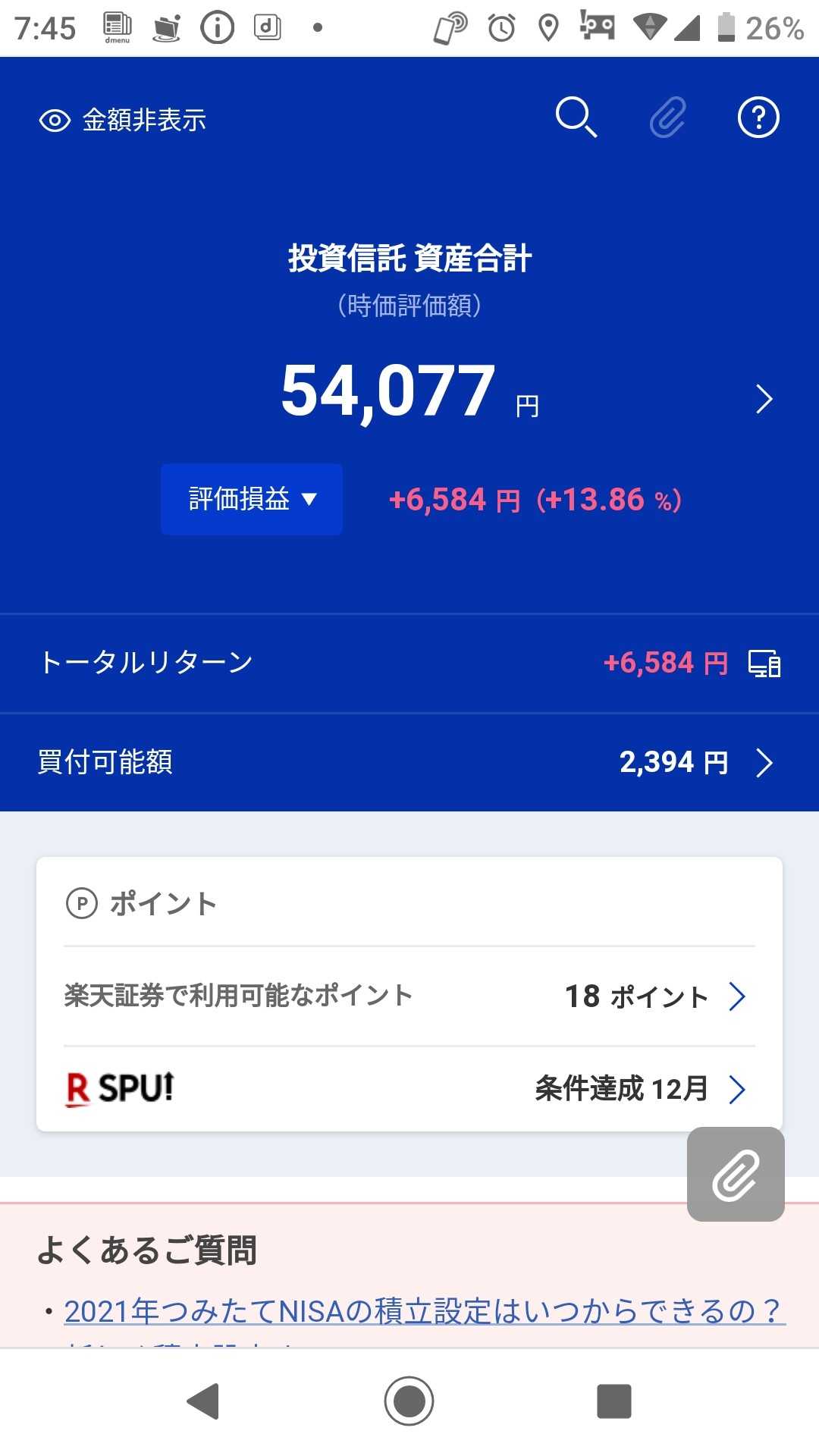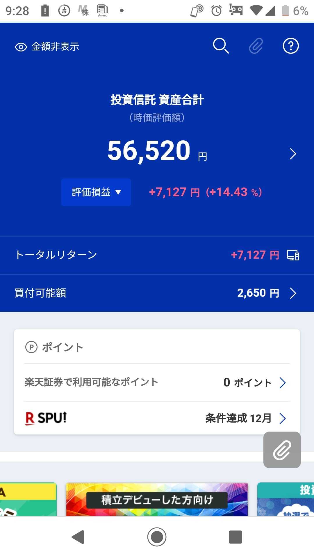 昨日、投稿したときより 約300円も増えていました 正直驚きました 少額投資ながら 投資額の倍になってます このまま 増え続けてくれたらと 願うばかりです
