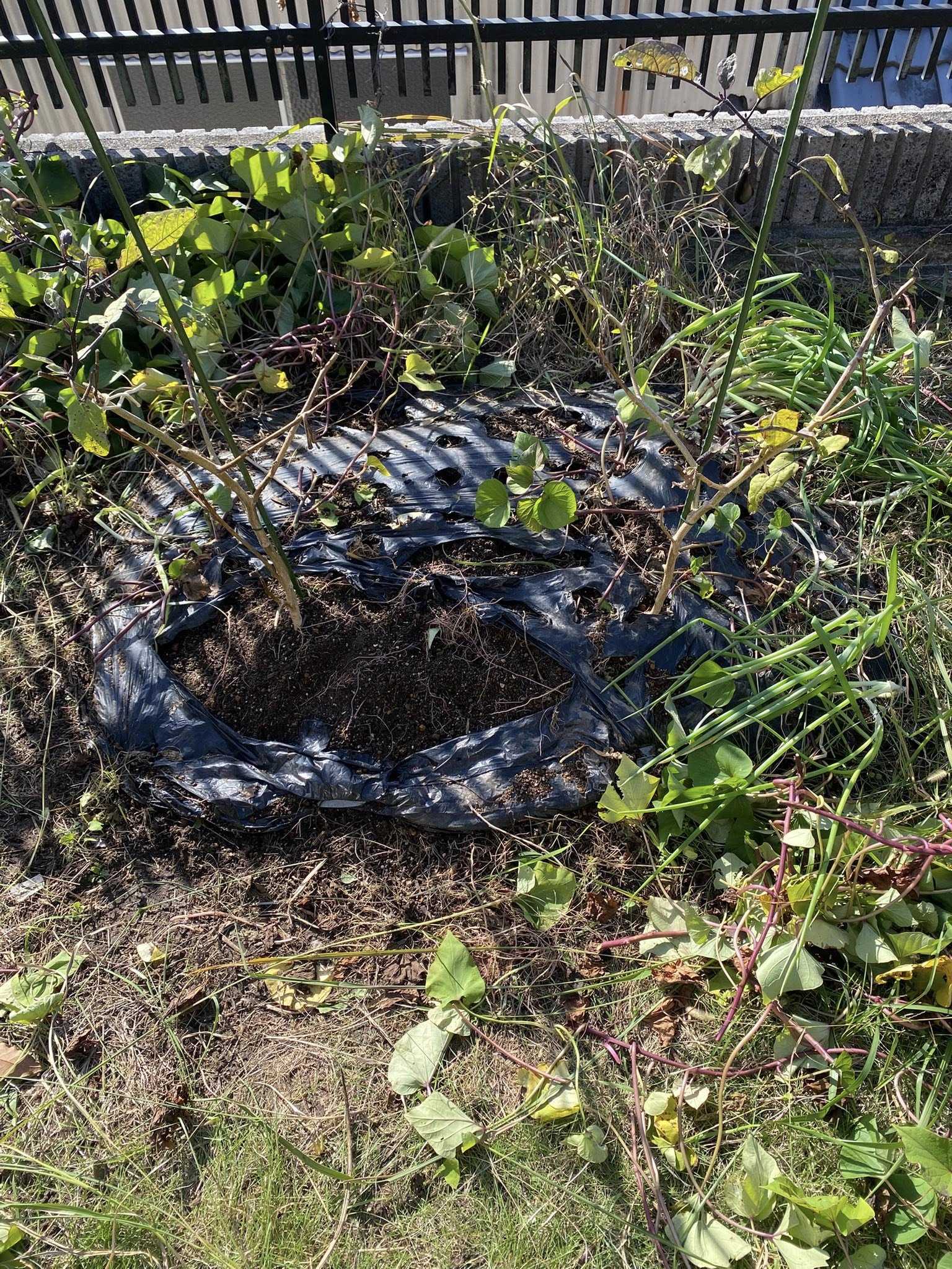 というわけで、今日は思い切って畝の蔓を全部切りました。フェンスの影で分かりにくいですね。