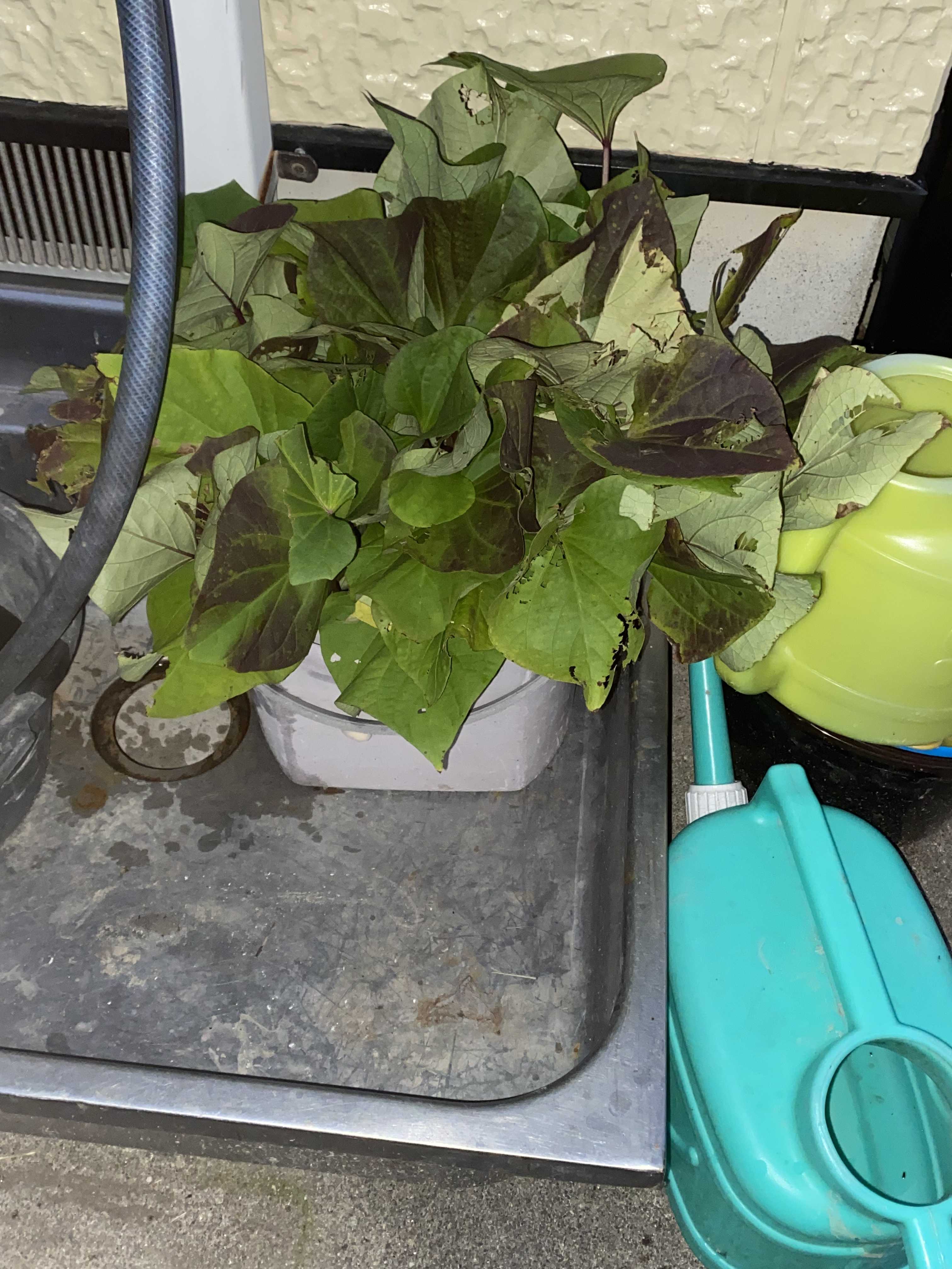 芋類は葉っぱが黄色くなってきたら収穫のサインだと、勝手に思い込んでいましたがサツマイモは90-120日?という情報がAIの集計結果で焦りました。