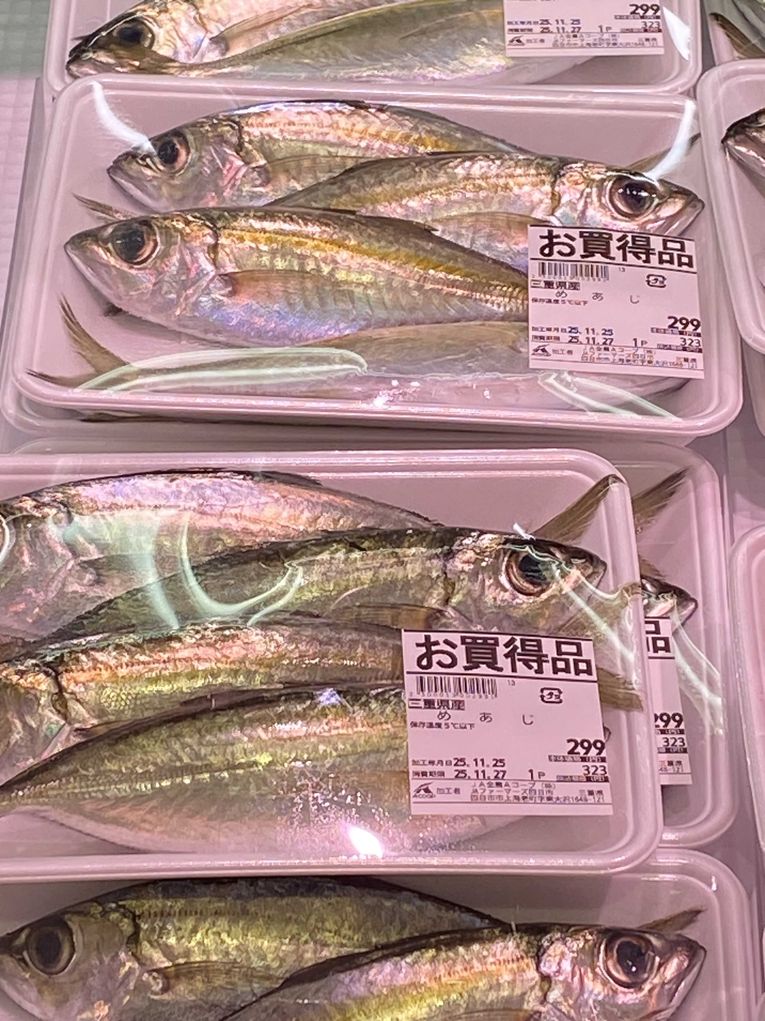 メアジ。これも25cmサイズ、しかも4尾入り![]()