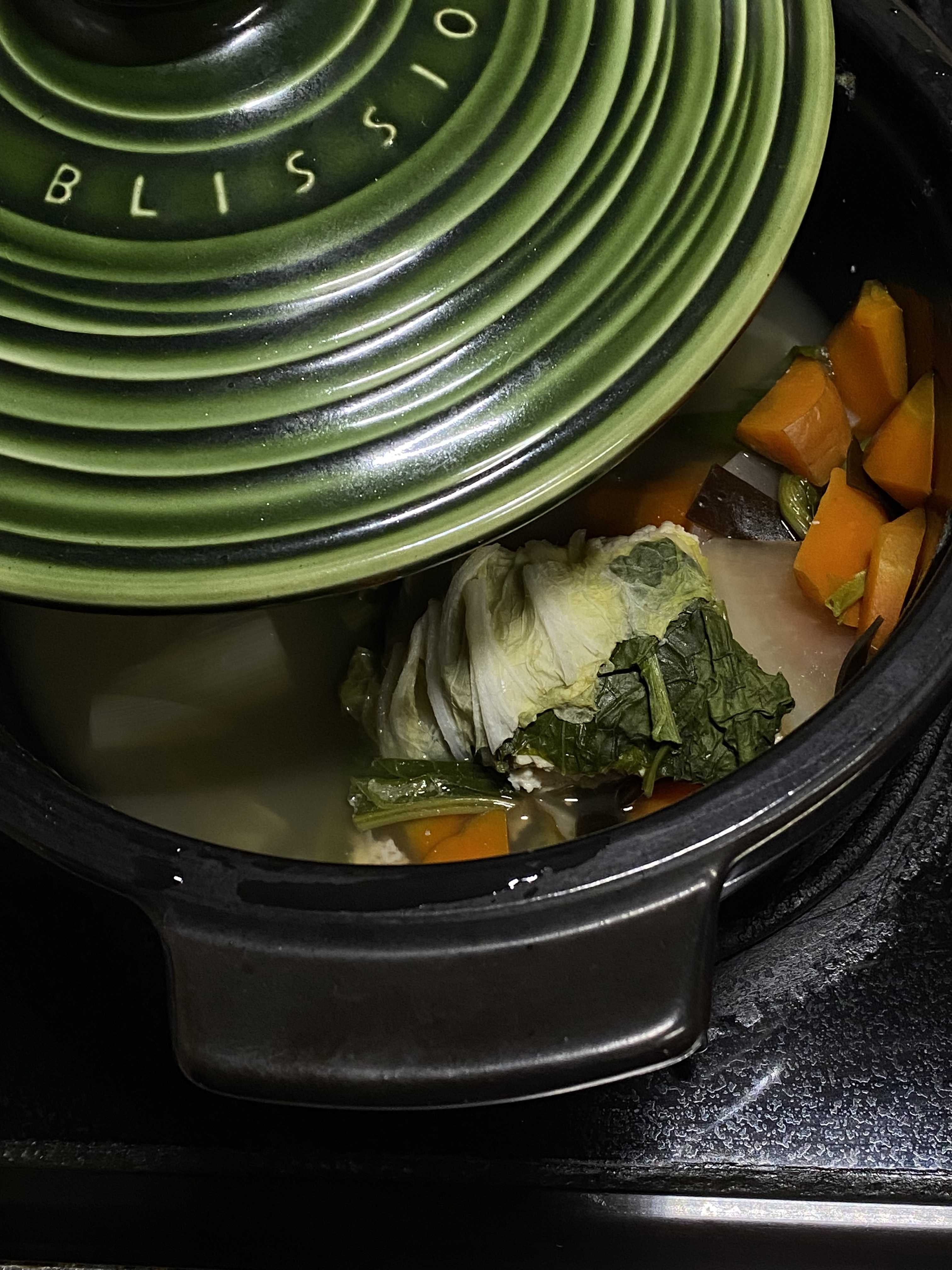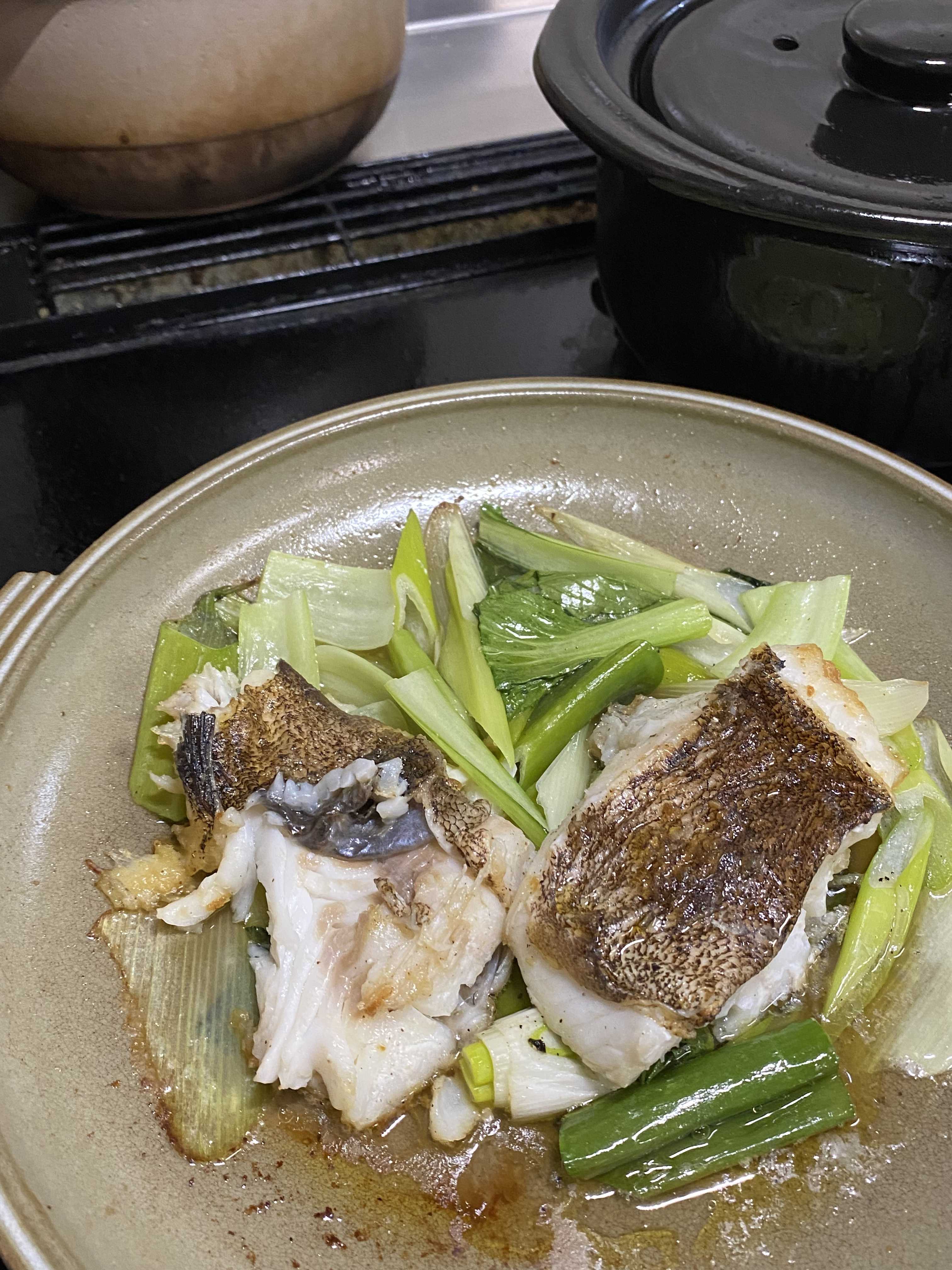 これを楽しみにしていたんですよねーハタ系はハズレなく美味しいオサカナです。以前アオハタも美味しかったです、沖縄ではハタのことミーバイという名前がつきます、沖縄でも高級魚。いつもの ぼうずコンニャク →オオモンハタ(この陶板は銀峯さんの三島陶板8号)ひとくち試しただけで、ハタはやっぱり美味しいオサカナ!プリっとふんわり💕すっごい旨みです、最後にここにパンを浸して食べようwパンで皿を拭うようにして完食!もうひとつは、鍋料理、今夜はちょっと冷いのでありがたいです。鍋料理だけではもったいない、銀峰さんの土鍋「菊花8号」🔸鍋料理もやっぱり、トロ火でゆーっくりコトコトするとホントに旨みが増します。 土鍋だとひときわです。 昔々、土鍋料理がコンロの強火に乗っている絵をよく見た気がします、 状況次第だとは思いますが、 焦らずに、ちょっと時間をかけた方が美味しくなるだろうともいます、ヨ♪今夜のこれ、ダシのネタとしては大したものは入っていません。ピギーパラーのコモキントン菰錦豚、こま切れ。それに多めの羅臼昆布、あとは野菜の旨みと紀文のちくわwなんでこんなに美味いの??思わず、ママ👩ちゃんに聞いてしまった私。🫠うましっ!今夜は 秋田の北鹿、純米生酛をぬる燗で1合だけいただきました💕ありがとうございまーす。
