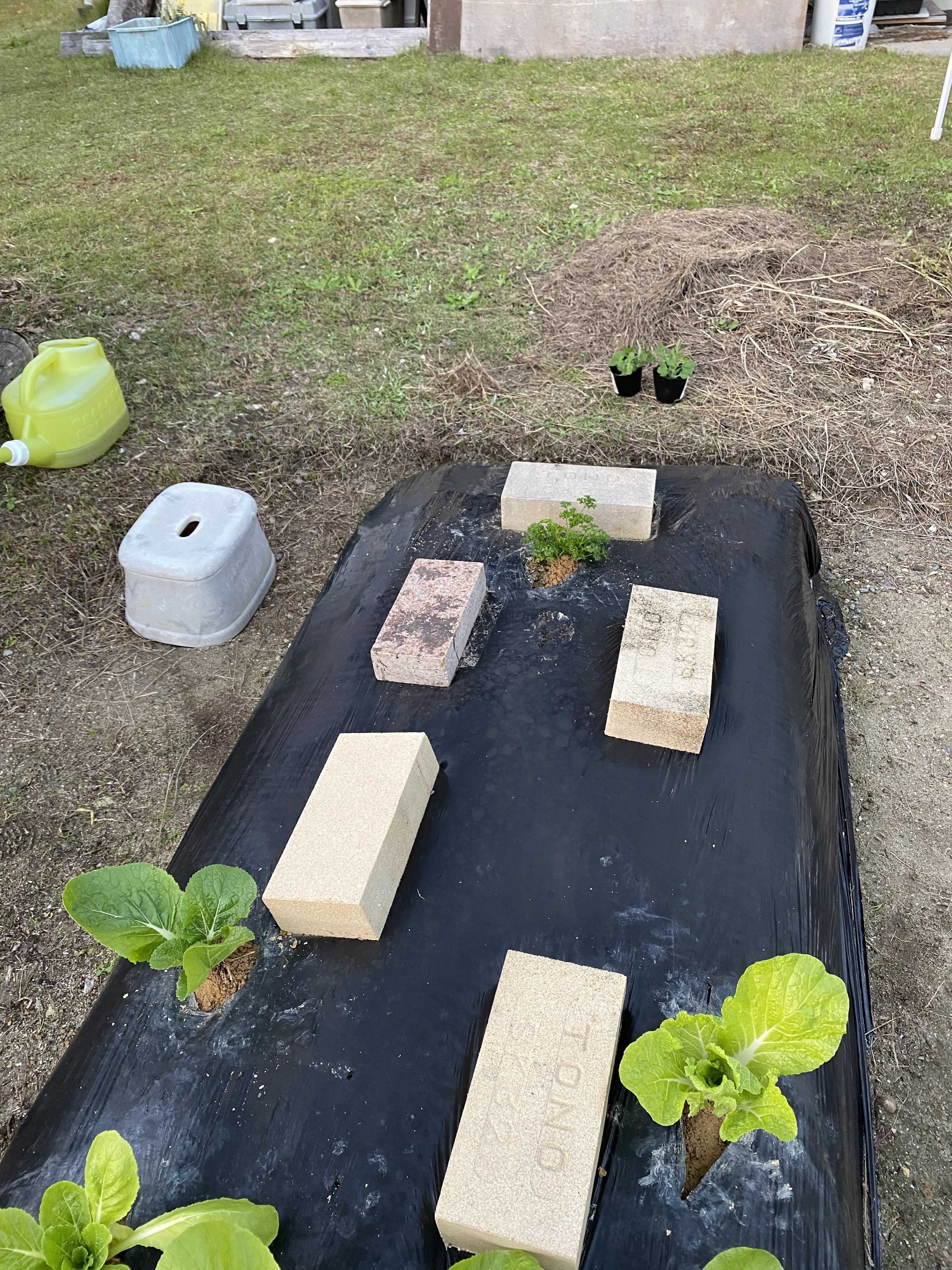 南側の芝生エリア、5月に作った菌ちゃん畝短い畝が三本。一番西側には自生したホーリーバジル・Kapoor がわんさか茂っていたのですが、思い切ってバッサリしました😢真ん中から西を見た絵、 お風呂の椅子がメチャいいんです!西側から東を見たところ。白菜の65days手前、 向こうは85daysあとは、どれがなに?もうわかりません、白菜もブロッコリーも全部別種とカリフラワー。南側の真ん中がカリフラワー。畝に余裕があるので、また植えるかもね。これはニンニク用に今日作ったマルチ穴あけ。R-1の容器。白菜他に使用したのは500mlペット製の穴あけ。今日使いましたがこれ、ホントにナイス😊で、R-1のこれで、ここにニンニクを仕込む予定日曜の午後かなーー。🔶これで穴あけは3種類、全部一緒にしておかないと、探し物が増える。ラッカースプレーで着色しないと野良場で見失う‼️黄色が🟡いいけど持ってない‼️ww 買ってこなくちゃ。。