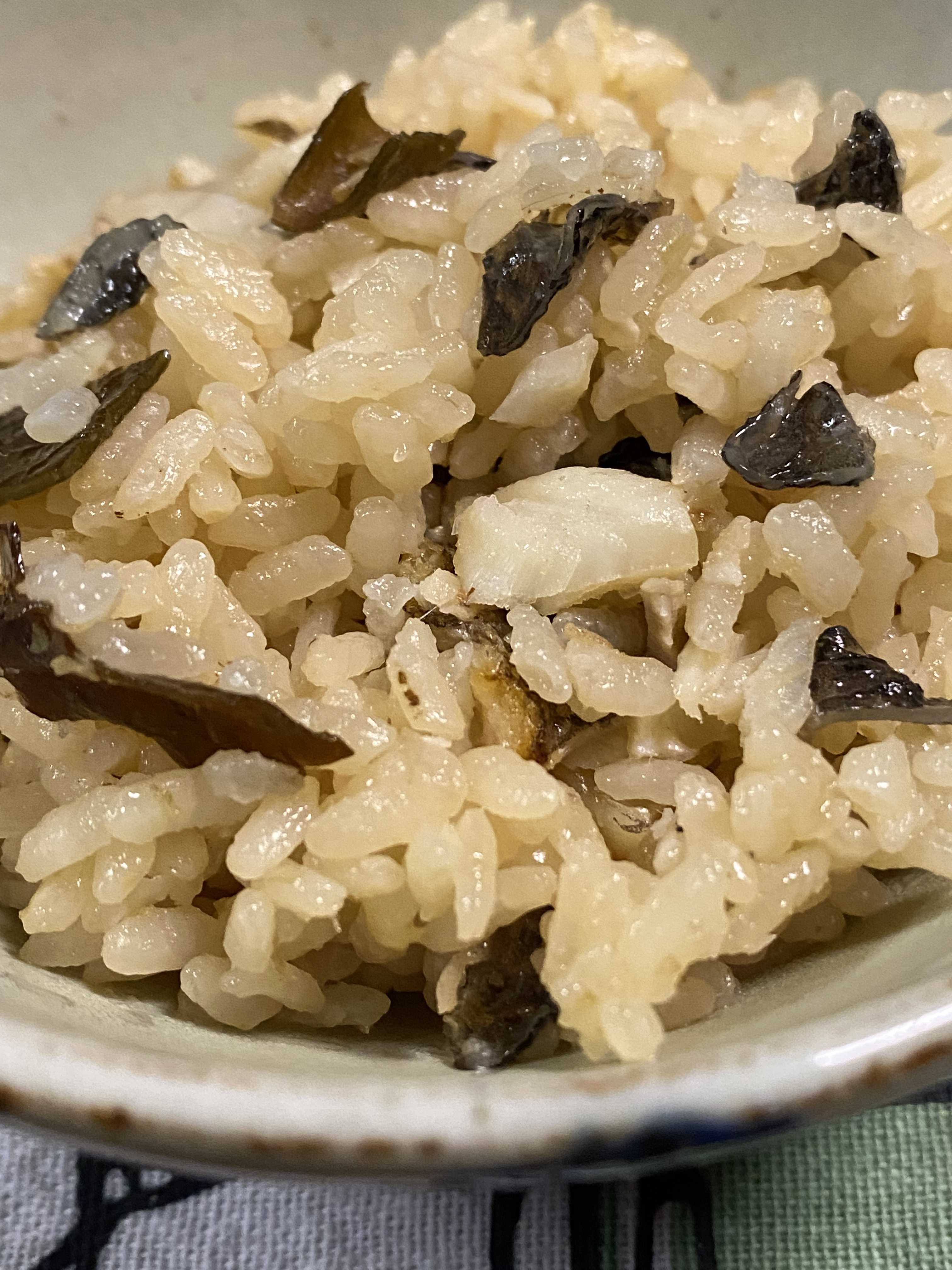 「+ひと手間」ってはずでしたが、昨夜煮付けにした煮汁を使えばその「+ひと手間」でダシを取る手間はいらないな、、と💦 やらずに済ませましたwまずは、出来上がりと 食べてみた感想を 先にひと言!めっさうまいっ!おすすめ!こりゃ、お勧めできます!🧡昨夜の煮付けの段階には昆布ダシがありません。---それだから?「美味しいオサカナのはずだけど、これで炊き込みご飯、ホントに美味しくなるかな?」そんな不安もあったので、、昆布を多めに入れたwいつも使っている、伊勢昆布さんのこれ、羅臼昆布↓ハサミでチョキチョキ、1cm角くらいに切って水に浸します。あとは、古根しようがで針生姜、煮付けの煮汁でお米を入れて合わせる、炊き込みご飯。🔸前日に用意したのはソイの切り身が2パック4切れ、(写真下はシマアジ)❶腹骨の少ない2切れを塩焼きにして、❷骨身は煮付けにしました。この煮汁と1残りの塩焼きで今回の炊き込み。🔸シマアジは25cmほどの1尾、塩焼きにして片面を食べて、残りの骨付き半身は炊き込み用に温存💛炊き込み用のふた切れは別途塩焼き。この煮汁をダシとして炊き込みに使うので「+ひと手間」を省きました💑醤油味がつきますけど、まぁいいじゃん。昨夜この煮付けを食べた感触は、身がしっかりしすぎていて箸先であしらっても千切れないほどしまっていたので、塩焼にした身をお米と一緒に炊いてもおそらくはほぐれないだろう、、と思い、炊き込む前に身をほぐして切り分けましたこんな感じ。煮付けの煮汁と昆布に生姜をいれて、炊きます♪出来上がり。羅臼昆布のお出しはやっぱり最強です、昨夜の煮魚と比べてこんなに美味しくなるなんて、びっくりさー。炊き込みご飯、って大袈裟なイメージ?べつに、、具材を入れて炊くだけです。土鍋で炊飯は毎日のことですから、特別感はないんですけど、土鍋で作ると少しだけかっこいい?wオサカナの炊き込みご飯、、美味しいです!お試しを🧡明日は、昨夜一緒に焼いたシマアジの塩焼きとアラのダシで似たような炊き込みご飯にします(^^♪