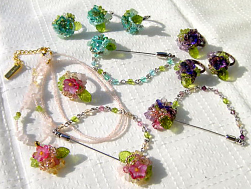 ぺリドット、アクアマリン、ローズクォーツ、ぺリドット、アメジストなどの、サザレ石を使った、プチ・ブーケみたいなアクセサリーです♪ 商品情報は、こちらをクリックして下さい♪店頭出荷前に、短期間だけ、オークション出品しています★店頭価格の約30%OFF!! 今だけです♪