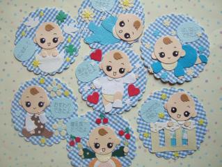 久しぶりにできたよ編出品しましたこちらは男の子編ですこちらが女の子編ですねどっちもカードは7枚セットです吹き出しの文字は『はじめまして』『はいはいできたよ』『おすわりできたよ』『ねがえりできたよ』『あんよできたよ』『離乳食たべたよ』『つかまり立ちできたよ』です カードの大きさは直径約6.1cmですこちらのパンチ使用しましたクラフトパンチ らくらく工房 3L スカラップサークル前にも紹介しましたが、気に入ってかなり使いまくってますペーパーはこちらですMMキッズコレクション 12インチペーパー イーサン ギンガムMMキッズコレクション 12インチペーパー ケイト ギンガムピンクは残念ながら品切れですどちらもちっちゃなチェックが可愛いですよね一枚一枚周りのお花など違う模様なんですイメージに合わせたつもりですさて、また頑張ろうっと
