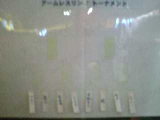 ジムの忘年会で使わせてもらったアウレアってお店で アームレスリング新年会やらせてもらいました。 また、2月10日に第2回女子アームレスリングトーナメントで 使わせてもらいます。 男性が17人、女性が2人。 左は、8人。 右は、僕が抜けて16人でトーナメントしました。 今回、採用させてもらったのは ダブルイルミネーショントーナメント方式。 名前は、初めて聞いたように思えますが 前に福山の学園祭アームで、ひろさんがやってたから やってみる事に。 グーグル調べ ダブルイルミネーショントーナメントとは 一度試合に負けても優勝のチャンスが残るという 敗者復活枠付きのトーナメント方式です。 運の要素をできるだけ排除し、実力のある選手が 勝ち残れるチャンスが増えているのが特徴。 グーグルイメージ、これが分かりやすいです。 http://images.google.co.jp/imgres?imgurl=http://fumimiya.hp.infoseek.co.jp/result/0402.gif&imgrefurl=http://fumimiya.hp.infoseek.co.jp/result/200402.html&h=390&w=812&sz=8&hl=ja&start=13&tbnid=dUvFA5jKbWdGxM:&tbnh=69&tbnw=144&prev=/images%3Fq%3D%25E3%2583%2580%25E3%2583%2596%25E3%2583%25AB%25E3%2582%25A4%25E3%2583%25AB%25E3%2583%259F%25E3%2583%258D%25E3%2583%25BC%25E3%2582%25B7%25E3%2583%25A7%25E3%2583%25B3%25E3%2580%2580%25E3%2583%2588%25E3%2583%25BC%25E3%2583%258A%25E3%2583%25A1%25E3%2583%25B3%25E3%2583%2588%26svnum%3D10%26hl%3Dja%26lr%3D まだ、アームレスリングは、割と早く決着が着くのでいいのですけど、ビリヤードとかダーツとか、ゲーム時間が長く人数が多くなってくると、めっちゃ時間がかかるって書いてありました。 やる順番もあるので、人数で端数が出たら、どうしようと 少し迷ったけど、新年会はコレでいく事に。 まず、紙に番号を書いてシャッフル後、選んで名前を書いてもらう。 それをトーナメントに貼り付ける。 少し遅れてくる人がいるみたいなので、先に前哨戦でレフトから。 やりたい人~って言うと、4人くらいだったので どうにか、4人出てもらって8人でレフト開始。 本命はKAN君ですけど、2回戦目だったかな まさーるとやって出だしがヤバかった。 おおーーー マジっすか~ 後、5cm KANピーーーンチ。 耐えて、ちょっとずつ盛り返して行って、大丈夫って位置まで そこから一気にフィニッシュ。 ふーーー 耐えてる間、見てるこっちが息が止まってました。 まさーるは、敗者復活で勝ち上がって また、決勝でKAN君とやって、もうダメって所まで攻めさせられて 力尽きました。 右は、僕は出場しないので、まさーるを呼んで少し練習。 組んで練習してないのに、前より強くなってる。 このやろ~~ タカノ橋に毎週来なさい。 強制参加ね ヨロシク。 遅れてた人も到着したので、ライトも開始。 1回戦目は、1つの台を使ってやっていって 敗者復活は、もう1つの台を使ってやった。 後半、連戦にならないように エキシビジョンでマサローさん登場。 試合の終わった人と練習。 マスクを被ってやれば良かった。次の時までに(笑) 右も決勝は、KAN君とまさーるかなって思ったけど 復活戦でまさーるは、Yさんとやって3位に。 右の決勝は、いつも練習に来てくれるメンバーだったので 正直良かった。 ストラップになるかな?って思ったけれど スタートでガチッとなって、ウォッシャーっと言ったKAN君の勝ち。 左右とも優勝おめでとう!!! STOP THE KANで、みんな頑張ろう~。 終わった後、1回でも勝てたので良かったと言ってくれたので この方式にして良かったです。 女性2人来てくれたのですが、アキラ&アキオさんの彼女2人で 来てくれるとは思ってなくて、2月に女子のトーナメントやるのを言ったら また、来てくれると言う。 2月10日は、アームレスリングに興味あって やりたい人であれば、誰でも参加OKです。 この日は、女子のトーナメントを主に行いますが 1回目が8人だったので、次は16人でやりたいです。 2月10日にやる、第2回女子アームレスリングトーナメント 参加者募集中です。 出場者全員に参加賞、3位までに商品を用意します。 是非、参加してみてくださいね。