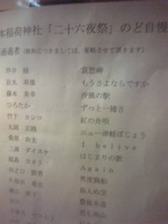 夜、途中で扇風機消したんだけど 起きてから、くしゃみと鼻水が止まらん。 いやや いやや。 結局、祭りが終わった今も続いてる(泣) 降水確率20%、曇りとかって表示になってたけど 降って、これ以上降らないかなって思ったら 降ったり、止んだりでした。 せっかく、昨日も(・∀・)イイ!!感じで人がいたんだけど やっぱ、雨の影響が少なからずある。 屋台の人が可哀相よね。 昨日のポニョっ子は予選通過して、今日も出るのかな~って ステージ近くまで行ったら、貼り紙がしてあった。 探してみたけど、ポニョっ子出てないな~。 おらんのかな。 えーーーって感じ。 マイミクさんで歌が上手い人、出ましょうや。 徳ちゃんも出たいってw 応援しますよ~!!! 商品と賞金が出ます。 1位~5位 今年は、おじさんが優勝です。 それから、神社にお参りに行って、おみくじを引いた。 いろいろと、お願いもしておいた。 お神酒飲みんさいって言われたけど、運転せんといけんからって言ったら もみじ饅頭をくれた。 良い事があるといいっすね。頑張ろう。 アームは、昨日と変わらんくらい、人が入れ代わりみたいな感じw 今日は、まぁ 健ちゃんに任せた。 アキラさんの会社の後輩とか来たけど、ゴツイっすね。 それから、もっとゴツイ人が大勢来た。 何してる人ですか?って聞いても答えをはぐらかすのは 公務員さんなんだろうね。多分、警察の人だと思う。 あれだけ、手が大きいと、どうしましょうって感じです。 改めて良い課題をもらった。 ふぃ~ さすがに手に力が入らんっていうか 手も肩も肘もピキピキっすね。 ひらーのさんとストラップして、2人とも力が入らなくて 笑うしかないみたいな。 昨日は、まだいけるって思ってたんだけど、いけんかったw 去年のお祭りの時より、少し人数も増えてるし みんなもちょっとずつ強くなってます。 打倒、カラオケ大会。 あっ 打倒しなくてもいいんで、出たい人出ましょうや。 応援するけん。 カラオケとアームレスリング大会を2本立てにして欲しいわ。 結構、子供らに人気あったよ。 カラオケ大会より参加者多いよね。 ニヒヒ。 昨日の子供らもまた来てやってたし。 ここら辺も、次の時、言ってもいいな。 大会すると怪我の心配がまるっきり0って訳じゃないけど なんやら祭りとかでも怪我人とか出るじゃん。 子供の心配、酔っ払いの心配。 そこら辺は、またどうなるか分からんけど もっと、鷹野橋のお祭りを盛り上がる、お祭りにしたいっすね~。 来年まで、さようなら~。 強くなって、帰って来るで~。 広島市内でアームレスリング(腕相撲)をストリートにて練習しています。GO-1や他の大会でも勝てるように一緒に練習してくれるアームレスリングメンバーを募集しています。広島をアームレスリングで一緒に盛り上げましょう!!! お祭りやイベントなんかでやりませんか?大会スポンサーや協力してくれる人も募集中です。メールかコメント下さいね。宜しくお願いします。
