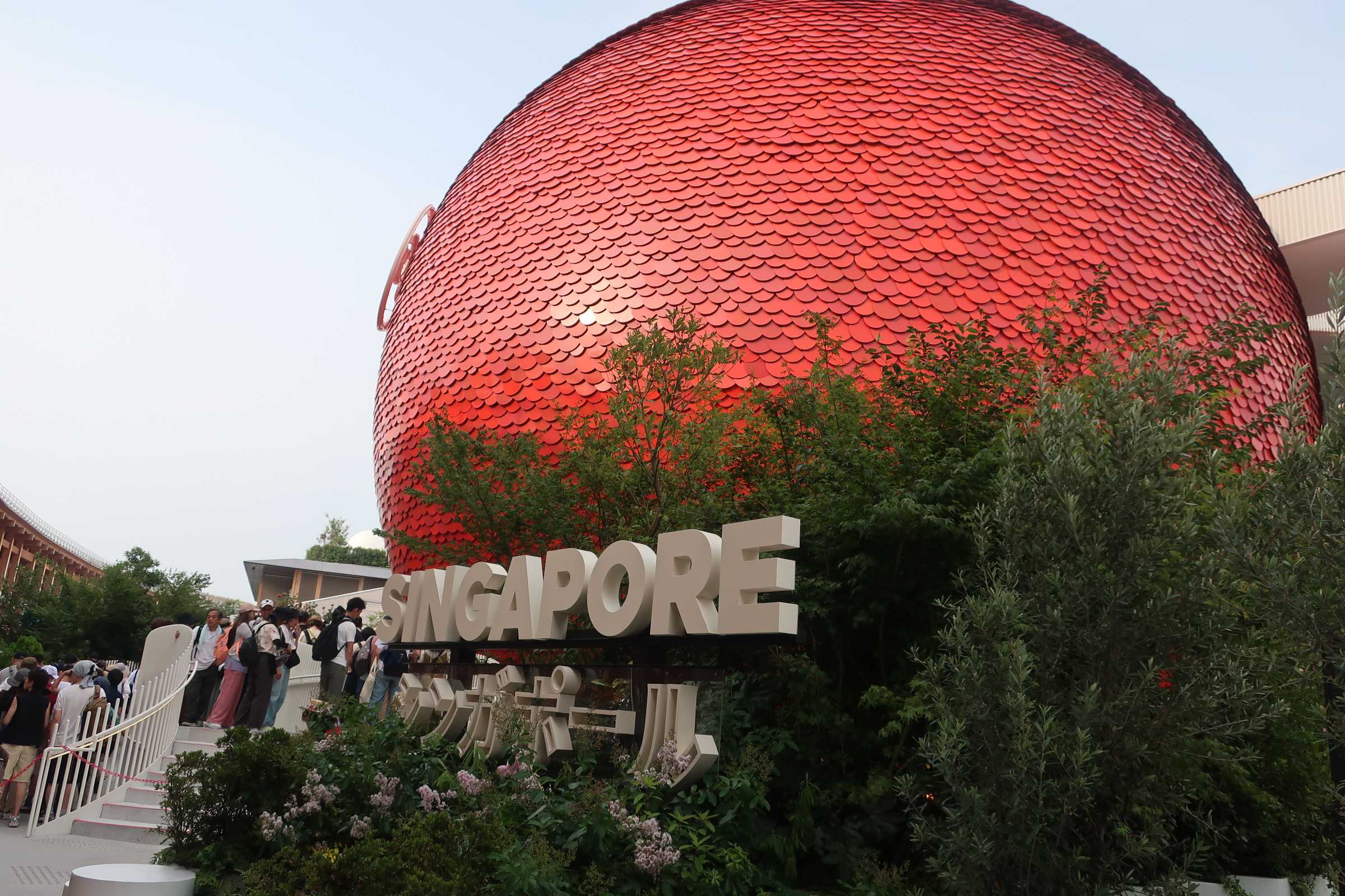 次は赤い球体の​ シンガポール パビリオン ​へ。