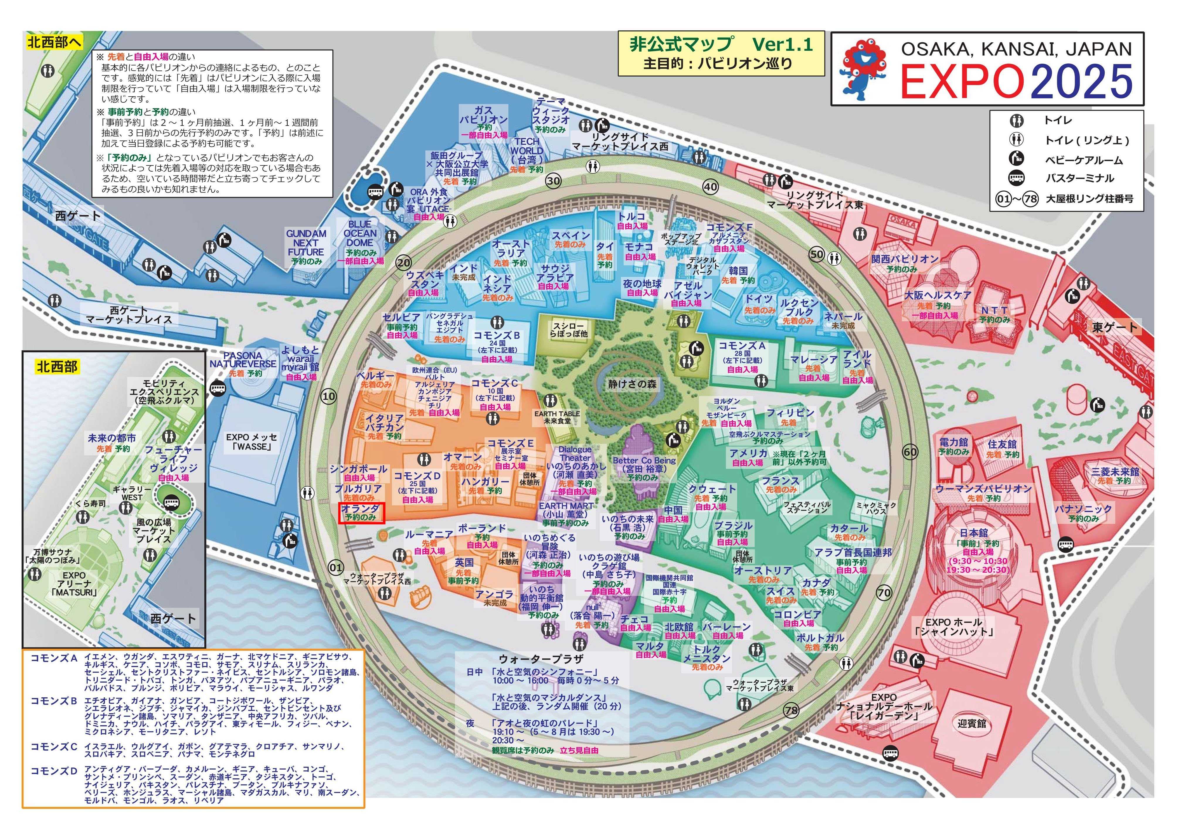 セービングゾーン(オレンジ色のエリア)は、コモンズ C,D,Eパビリオン、ブルガリア、