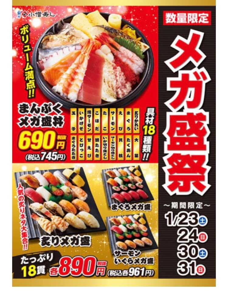 小僧寿しが、 メガ盛祭 開催を発表しています。 期間は、1月23日(土)~24日(日)・30日(土)~31日(日)です。 まんぷくメガ盛り丼は、18種類のネタが入って690円は、お得ですね。 炙りメガ盛握りも美味しそうです。 小僧寿しの100株ホルダーですが、株主優待制度の改悪で株主優待がもらえなくなって久しいです。早く業績回復して100株ホルダーにも株主優待制度を再開してもらいたいですね。 包丁不要!高級本まぐろ入り豪華海鮮5種セット(本まぐろ中とろ100g/10切れ、無添加生うに100g、いくら醤油漬け80g、ほたて貝柱100g、極上ねぎとろ100g)約3〜4人前[送料無料]価格:4999円(税込、送料無料) (2021/1/23時点)楽天で購入