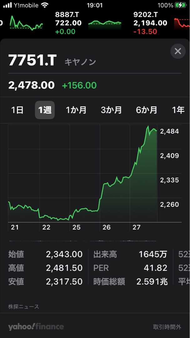 キヤノンの株は、自分のポートフォリオに占める割合が高く、コロナの影響でしばらく含み損が拡大の一途でしたが、ここに来てようやく株価が持ち直して来ました。 特に今週の値動きは大きく上振れしており、このまま行けば一気に含み損が解消出来るかもしれません。今期は配当金も半減していますが、また元の高配当株に戻ってくれることを期待しています。 キヤノン CANON インクジェット複合機 TS5330 WHITE [カード/名刺〜A4][プリンター PIXUSTS5330WH]価格:10800円(税込、送料別) (2021/1/27時点)楽天で購入