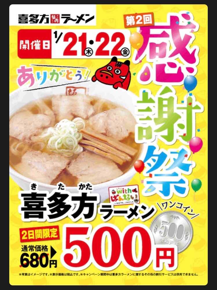 1月21日、22日の二日間限定で喜多方ラーメンの坂内が通常価格680円のラーメンを500円で提供します 坂内のラーメンは、チャーシューがとても柔らかくて美味しいです。 先月は出前館の株主優待券を使って坂内のラーメンをデリバリーしてもらいました。 寒い時期なので機会があれば是非食べに行きたいと思います。 喜多方ラーメン坂内食堂 5食セット価格:3500円(税込、送料別) (2021/1/21時点)楽天で購入