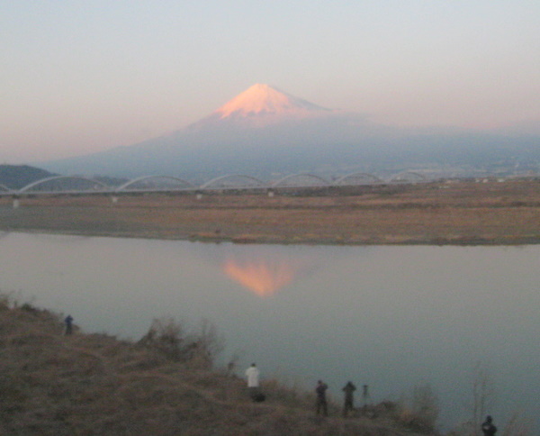 静岡通過中に夕日に照らされた富士山がきれいでした壊れかけた僕のコンデジで新幹線の中から時速200kmで切り取った風景ですなんと僕と同じ思いでしかし装備は完璧なカメラマンたちが写っていました今朝になって写真を整理していて気づいた一コマです