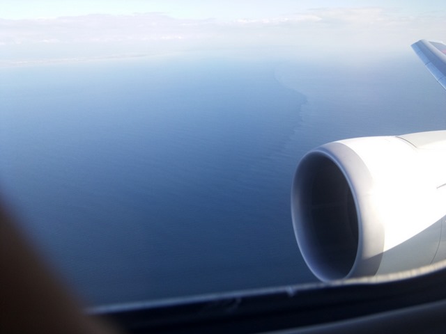 そういえば昨日、津軽海峡の上空にいるときふと下を見下ろすと海にものすごく長い波が見えますもしや津波かとシャッターを切りましたがなにしろ空の上なので地震があったのか確認することもできずすぐに忘れてしまいましたが今思い出しました昨日の北海道や東北には津波が起きるほどの地震は無かったようですね