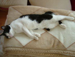 パセリがうちの子になって、3ヶ月…。と、いうことは今、月齢5ヶ月。。最初の頃は、ちっちゃくなって寝ていたのに、でもね、最近のパセリはとっても大胆。。。これは普通だけど。。。これなんか男の子みたい。。。パセリィ。。。女の子にゃんだから、大股開きはちょっとね…。パセリ「だって、バジルお姉ちゃんもこうやって寝ていましゅ。。」「このかっこうはらくなんでしゅよ。。」楽ならしょうがないかぁ。。。でもさぁ。。。この写真みんなにみせてもいいのぉ。。?パセリ「えっ?どれでしゅか? これみせちゃうんでしゅか。。。」「ママはいじわるでしゅ。。。はじゅかしいでしゅ。。。」うふふ。。。見せちゃおう。。。(^m^)なんだか、人間っぽいでしょ??(^o^)おまけにパセリの肉球を初公開。ブチはパセリだけなのぉ。。。シナモンはピンクだし…ほかの子はみんな黒だから。。。我が家では、とっても貴重なブチの肉球です(^_^)