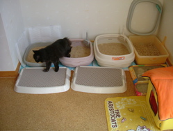 最近なにかと忙しく、ネコトイレの掃除をきちんとしていなかった。今日こそは…と思いつき、掃除をはじめたの。。。普段はこんなふうになっているけど、お掃除中は。。。 こんなふうにトイレを積み上げてお掃除するの。。ところがね、そこにやんちゃ坊主シナモンが登場。。。ネコ部屋に入ってきたモンちゃんの行動をみてね!モンちゃんが入ったトイレは、一番不安定な場所にあるのに。。スリルを味わいながらのトイレって、落ち着いてできるのかなぁ。。?去勢手術をしてから、やんちゃに磨きがかかったモンちゃんです。。
