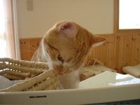 また、我が家で事件が発生!!8月9日の日記に書いた事件と同じような事件が。。。。犯にゃんは誰だ?と思っていたら、また違う場所での犯行跡を発見!!ほらね!同じでしょう?実はこのあとこのトイレの砂が入ったダンボールを食いちぎった犯行現場を目撃した(^o^)犯にゃんはなんと『パセリ』だった。。。ははぁ~ん…そろそろ歯が抜けかわるのか…うふふ…今度こそ抜けた歯をゲットしよう!!ところがね…ネコ砂ダンボールの犯にゃんとは別に犯にゃんがいるのを見てしまった。。。やっぱりね。。。。それでは犯行場面をどうぞごらんください(^m^)