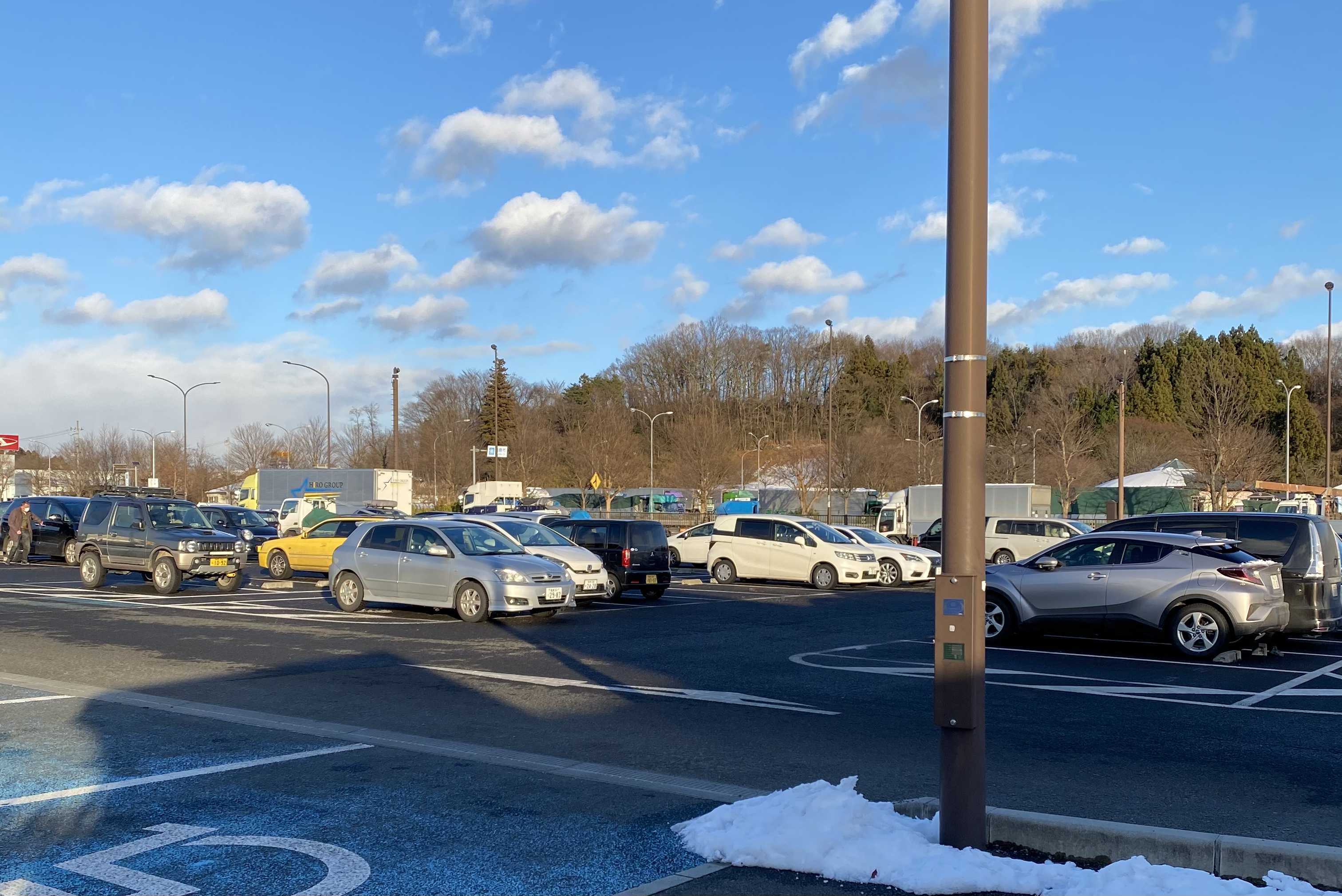 昼過ぎの画像です。駐車台数が少ない、皆さん自粛しているのでしょうか?