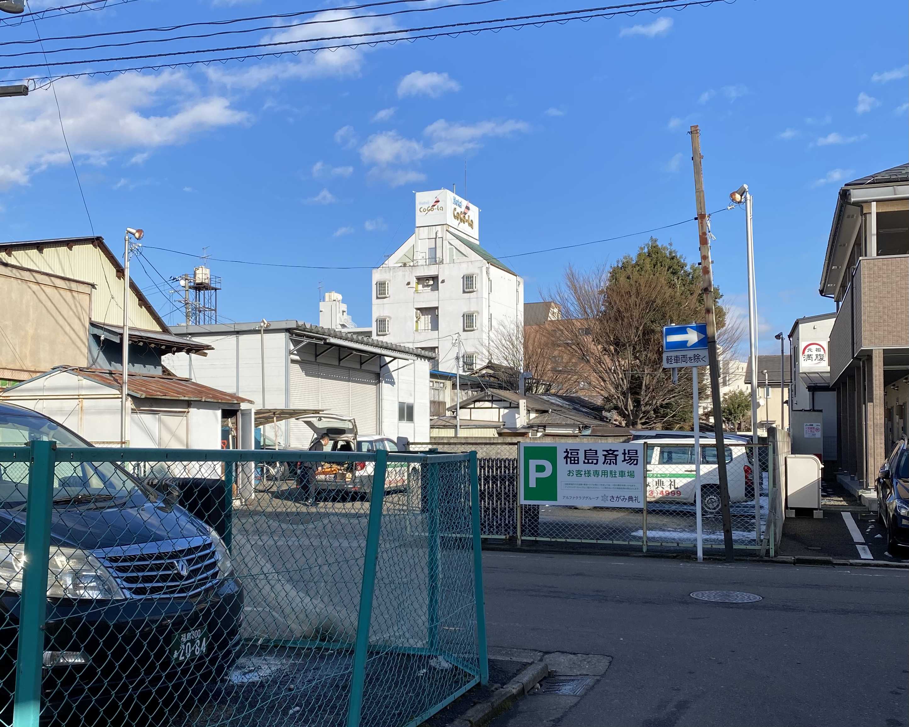 道幅が狭い一方通行路で、北へ向かっては福島市図書館・公会堂(休館)