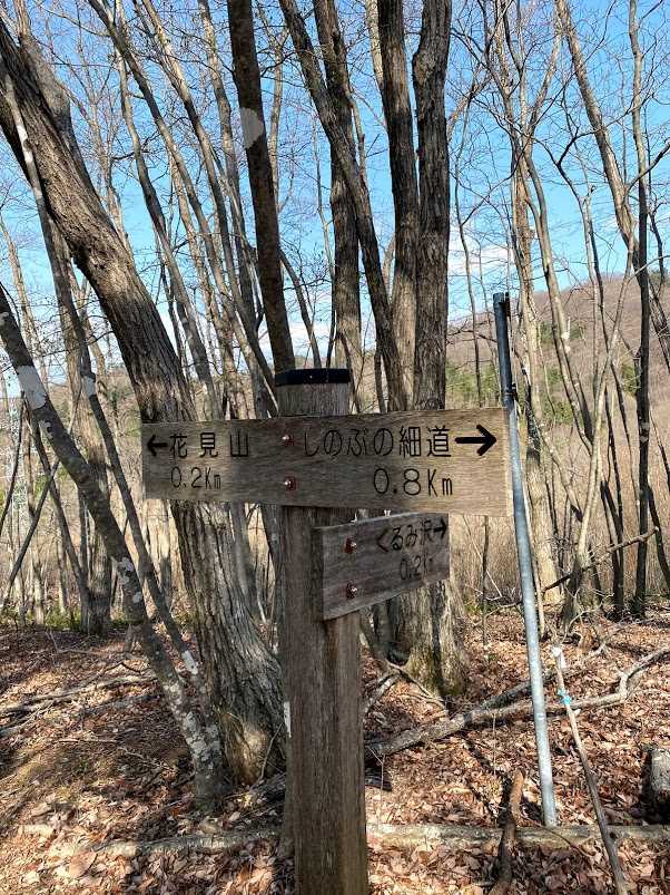 不思議な感覚です。「しのぶの細道」から1Km下って来たところが花見山の山頂とは!