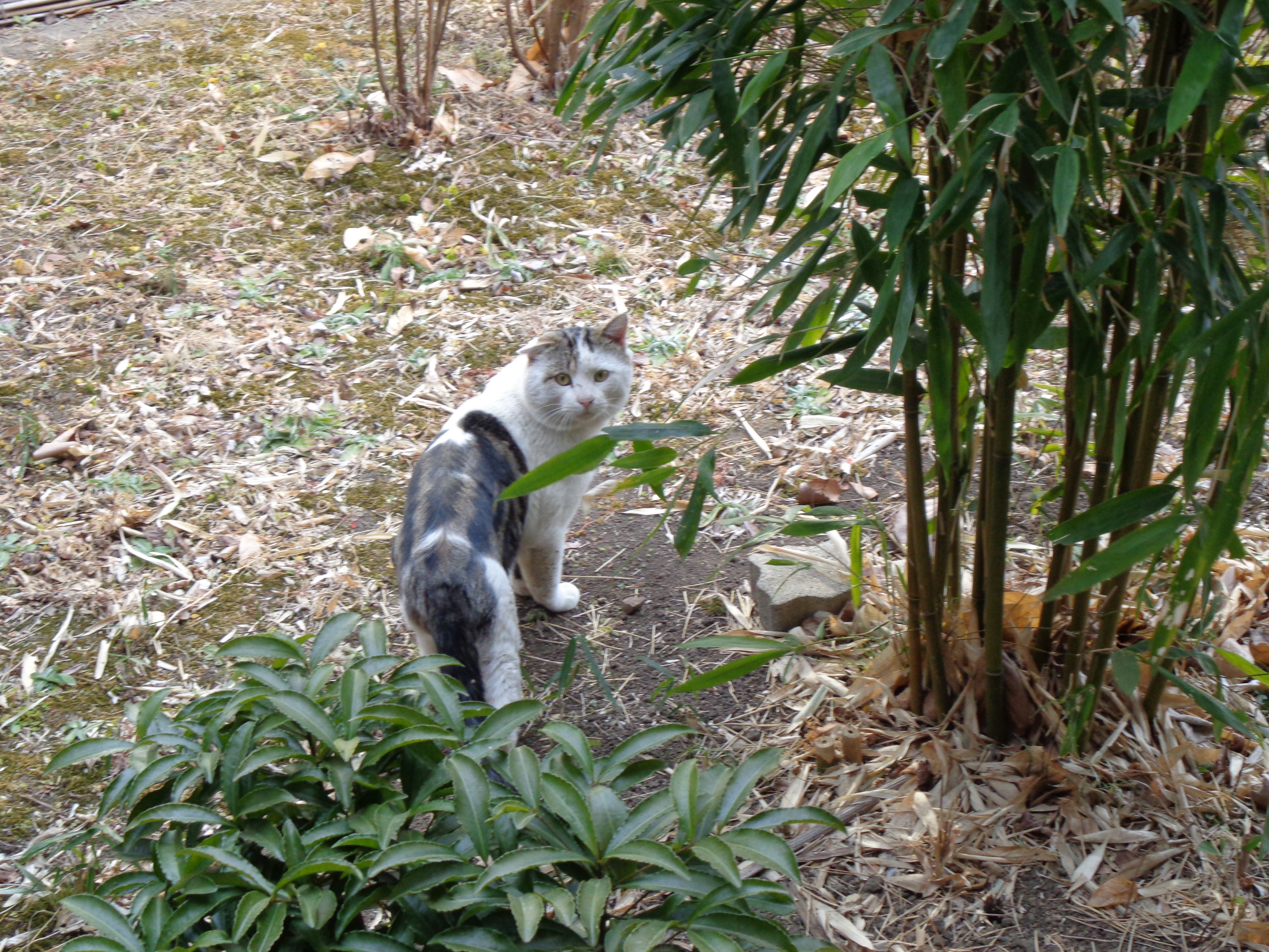 ある日、久しぶりに庭に猫のお客さんが来ていました。