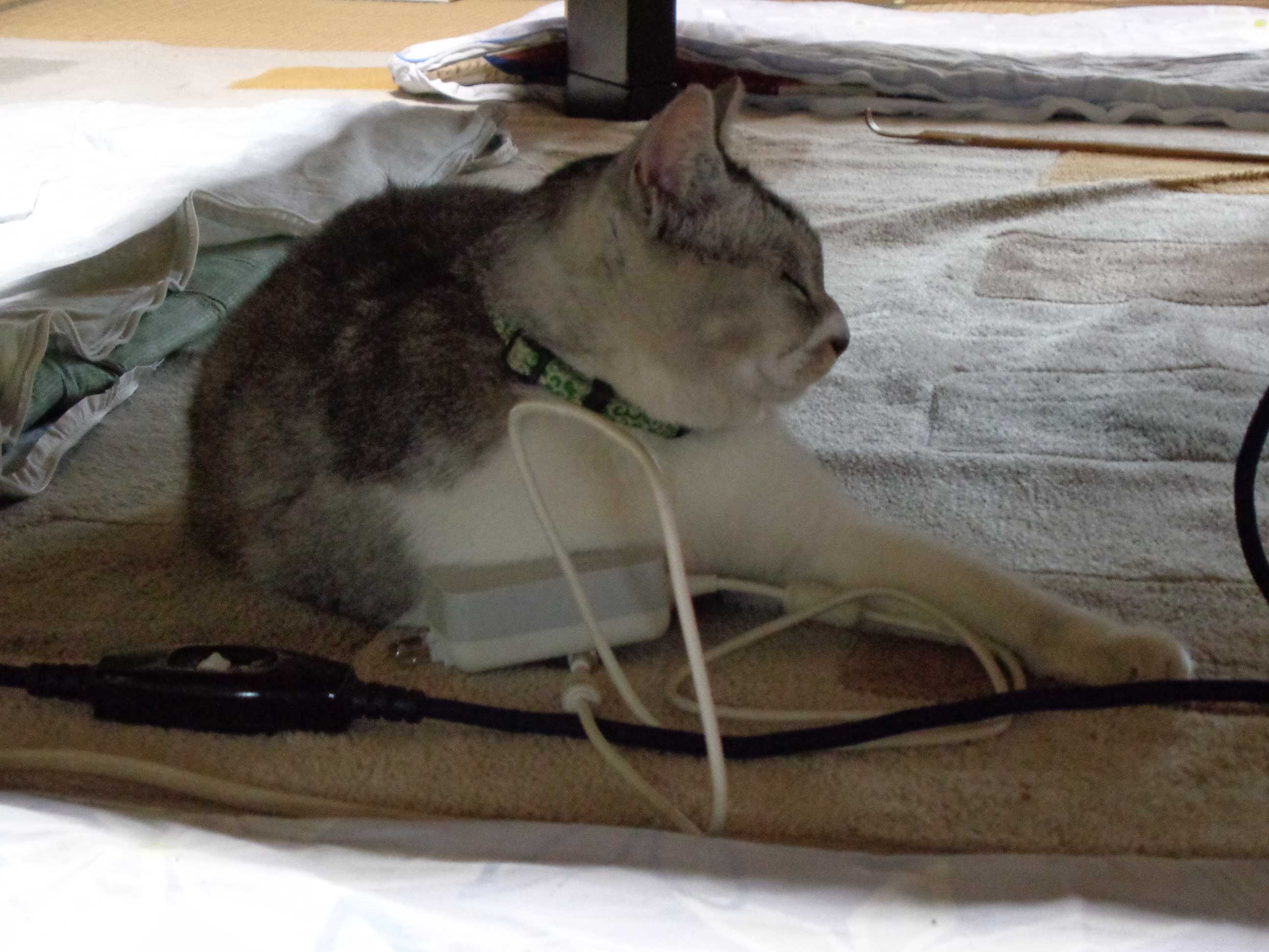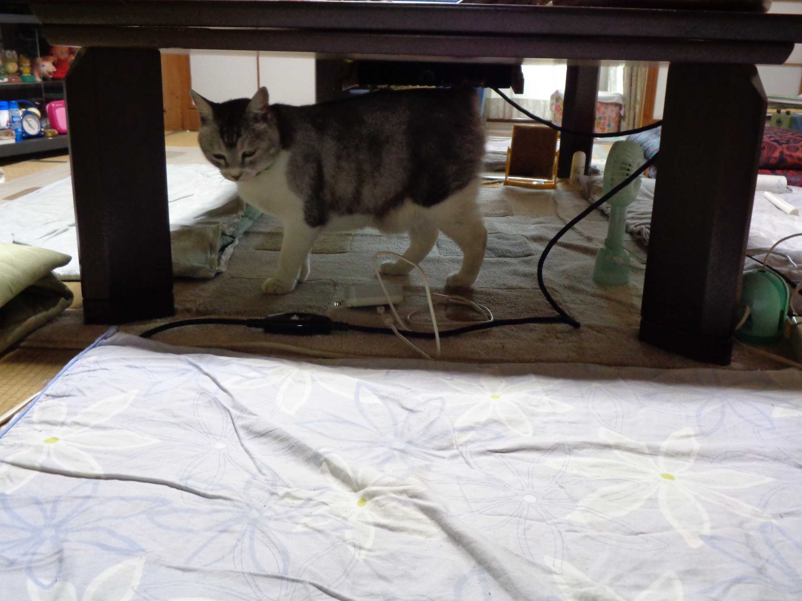 コタツ布団がなくなってスッキリしたテーブルの下で寝ることにしたようでした。