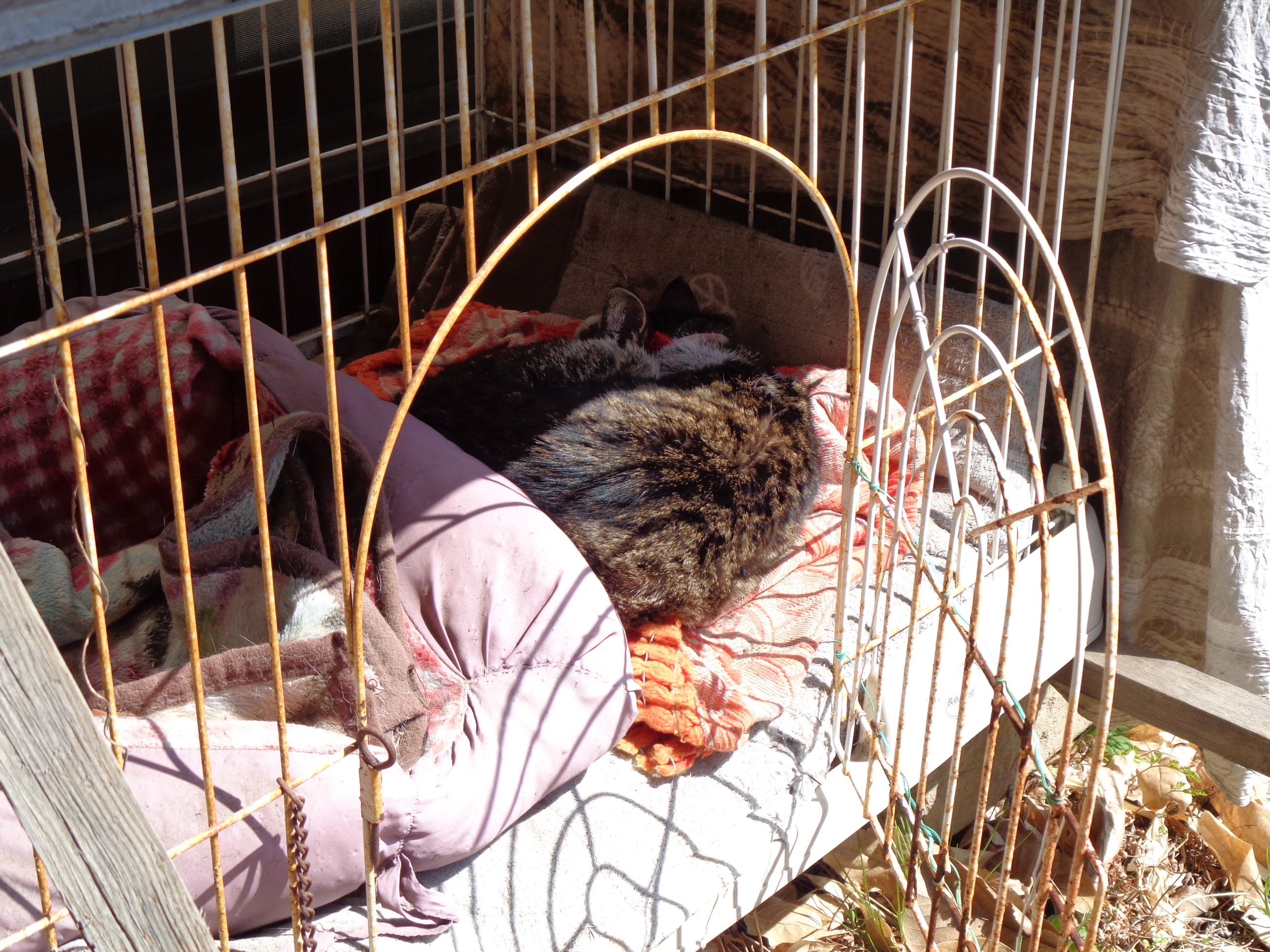 今日は暖かい日でした。猫たちも庭でのんびり過ごしていたみたいでした。でも明日から寒くなってくるみたいですね。なんか今までの最低気温くらいしかならなくなるとか?(ほんとに?)やっぱり今年のお天気の変化はよく分からないと思った記録用の話かな。そうそう、猫は相変わらずマイペースで元気なんだけど・・・これも言っていいのか分からないけど・・・ミゾさん、お腹ピーピー治ったと思ったら治りきってなかったらしくてふと気づいたらお尻の周りガビガビだったみたいな・・・なので二人がかりでとっ捕まえてガビガビを取ってあげてたんだけど毛が引っ張られたのが痛かったのか・・・なんか怒ってましたね。なのでまたゴキゲン損ねてしまうかなと心配してたんだけどその後、全然普通というか通常運転だったみたいな。まぁ根に持ってないならいいんだけど・・・やっぱりミゾの基準がよく分からないと思った記録用の話ということで。ゴキゲンの基準が分からないミゾさんの一方でチビタちゃんは相変わらず安定の良い子でした。今日は暖かくて日差しも暑いくらいだったからか日陰でクールダウンしていました。こうして丁度いい場所を移動して過ごしているみたいです。やっぱりチビタちゃんは賢いね。なんだか和む光景でした・・・MHPは引き続き火竜の逆鱗を入手すべく集会所★5の一対の巨影を周回していたんだけどリオレイアが飛んだままになってしまうバグに遭遇してしまいました。まぁ・・・してしまいました~というか、有名なバグなのでちょっと見てみたいかなと思ってたというのもあって先にレウスを倒して様子を見ていた部分もあったんですけど。で、こうなってしまうと本当に手も足も出ないんだなと思いつつ有名なバグに出会えて自分も一端のハンターの仲間入りができたかなと(←?)ちょっと思った記録用の話ということで。そしてあまりに火竜の逆鱗が出ないのでとうとうG級レウスで尻尾リタマラを始めてみたんだけどそしたら5匹目で火竜の逆鱗が出ましたよ。やっぱりこれが一番効率のいい方法なのかもしれない。というわけで引き続き逆鱗を求めて狩猟生活は続く・・・