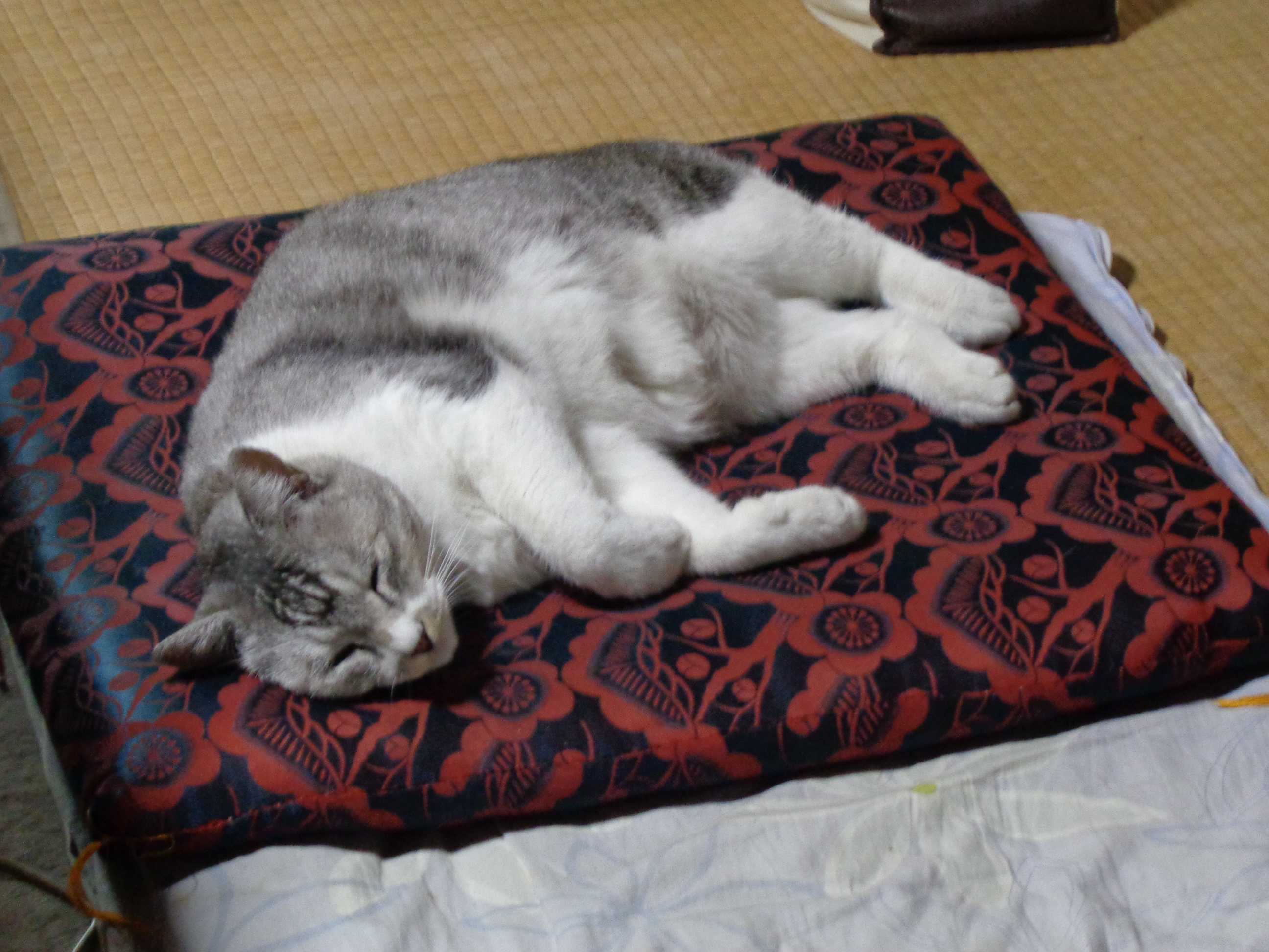 お盆休みももう終わりですね。なんか数日前くらいまで微妙なお天気で気温もそれほど高くなくて夜とか虫の声が聞こえてきてたので今年は暑さが酷かったので収まるのも早いのかなと思いきやまた暑が戻ってきましたね。世の中そんなに甘くないということかな。そう、暑さ関係ないけどお盆なのでいつものこれを作ってみました。ナス牛とキュウリ馬。精霊牛と精霊馬ともいうのかな。そういえば今年も暑さのせいかキュウリもナスも終わりっぽかったらしいんだけど雨のせいかまたキュウリが出来てたって。でもそんなせいかナスもキュウリもちょっと傷があって満身創痍っぽいけどまぁそれもまた味があっていいかなということで。なににせよちゃんと作れてよかったでした。猫は相変わらずといえば相変わらずだけどチビタちゃんがちょっと元気がないというか食欲がなかったかな。でも今日辺り元気になってちゅーるも2本くらい食べてお散歩に出かけて行ったのでもう大丈夫みたいですけど。でも人間でも調子が悪くなるようなお天気なので流石に暑さに強い猫さんでもそういうこともあるのでしょうね。頑張って夏を乗り切りましょうねというわけでチビタちゃんはお散歩で写真が撮れないので写真はちょっと前の霙さん。この日も引き続き監獄寝床でお昼寝をしていました。前の日記と同じような写真だけど違う日です。なんかマイブームが続くと同じような写真が続いてしまいますね。でも留守がちだと写真撮れないのでそれよりはいいかなと。しばらくして・・・寝返りを打ってこっちを向いていました。開き気味の後ろあんよの肉球がプリティーですそしてまた暫し・・・何気に組んだ前手々がお上品ですね。そしてまた暫し・・・ふと気づいたら起きてこっちを見ていた。お家に入っておやつでも食べるのかな?でもね黙っていたら気付かないのですよ。いえ結局気付くんだけど・・・(部屋に居ればね)なんだろうこれ・・・省エネモードとか?暑いからエネルギー使いたくないのかな?でもできたらちゃんと主張してほしいなと思った記録用の話ということで。ゲーム的には何というのかな・・・またPSPが不具合っぽいみたいな。でもそれがバッテリーなのか本体なのかがよく分からない。バッテリーは買ったばっかりだけど所詮純正じゃないし本体は中古でもう結構使ってるし。ハッキリどっちが悪いか分かればそっちだけ買えばいいんだけど両方かもしれないし・・・なんかもう考えるのがめんどくさくなってきた。そんで考えてるのがPS4でもできるモンハンを買うか・・・それともいっそswitchを買ってモンハンを始めるか・・・でも暑くて考えが纏まらない。なんかやりたい気はあるんだけど・・・さてどうしようかなと考えている記録用の話ということで。