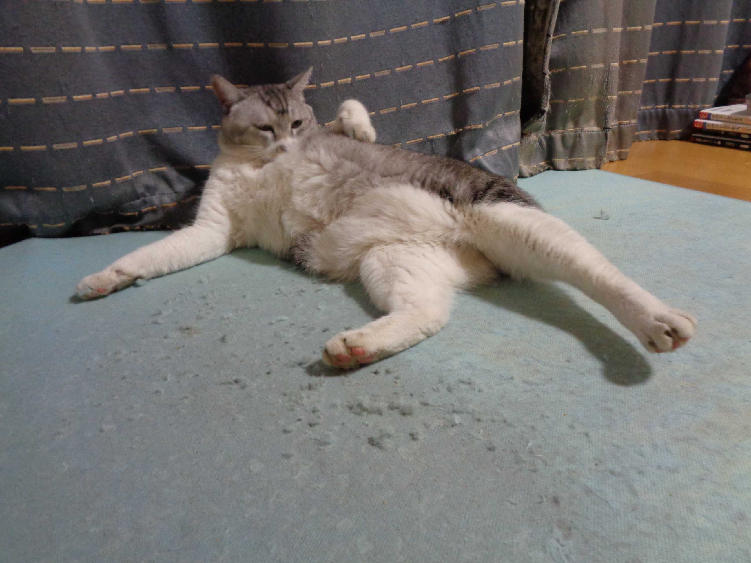 なんかちょっと気温が下がったと思ったら急に台風が来てそしてまた暑さが戻ってきたみたいな。やっぱり変なお天気。台風はうちの辺りはジメジメ雨が降ってたくらいだったけど大変なところは大変だったみたいですね。みなさんのところは大丈夫でしたか?ほんとなんというか何が起こるか分からない最近の今日この頃ですね。そんで台風のせいか関係ないのか分からないけどすこぶる体調がよろしくないというか気分も低空飛行というか・・・なんか食べたものがわるかったのかとも思ったけど別に変なもの食べてないし。まぁ考えても分からないからいいか・・・(←?)というわけで間が空いちゃうといろいろ忘れちゃうので一応記録というか、写真もあるのでさくっと更新しておこうかな・・・のびのびと毛づくろいをする霙さん。お腹ぷにぷにのふわっふわですね。最近、ご飯の後に私の部屋にズカズカ入ってきて寛いでいくのがマイブームみたい。で、それはいいんだけど・・・除湿シート的なのがいつの間にかボロボロ&すっごい汚れてた(←はよ気付けと)でもまぁそうか・・・土足の猫がウロウロ歩いたり爪とぎしてたらこうなりますよね。ほら、言ってる傍から爪にシートのカスが・・・いえいいんですよもう買い替えるからね。のびのびごろ~ん。シートボロボロにしたお詫びのサービスショットですか?ありがとう。というわけで今日はこの辺で・・・ご訪問、コメント等また後ほどということで・・・おやすみなさい(←寝るんかい!)