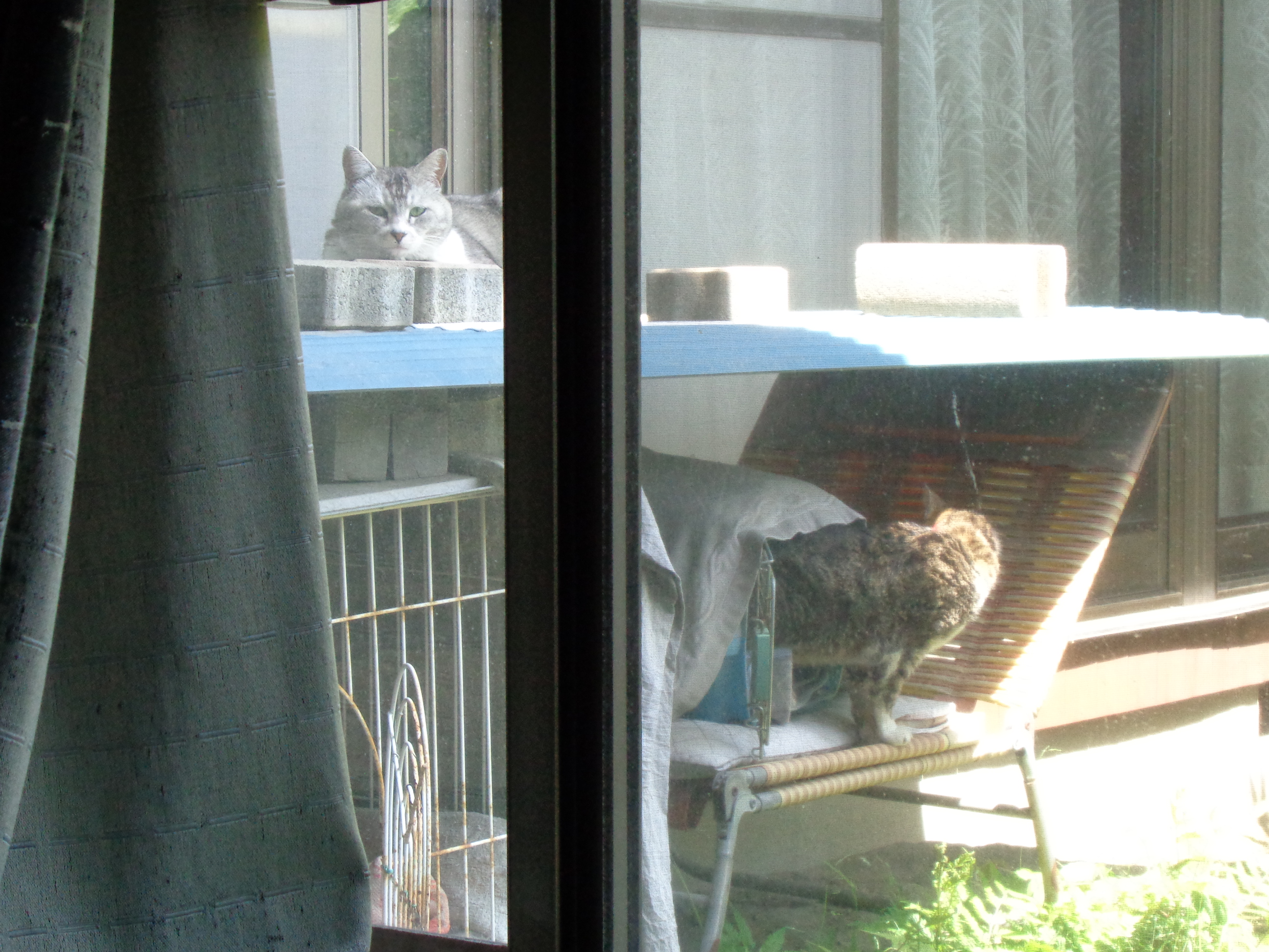 なんだか先日まで結構暖かかったのが昨日今日辺りまた寒くなりました。というか今日とかすごく寒いんですけど~。三寒四温というのでしょうけど気温の変化が大きいような気がするのは気のせい?丁度いい過ごしやすいお天気になってほしいものですねそう、体調はだいぶよくなってきました。熱もちょっと前まで私にしては高い状態が続いてたけど気付けばいつも通りの35度台に戻ってたし。あと空腹の感覚も戻ってきたし。お腹が空かないのは却って好都合かなとも思ったりもしたけど健康でなくてご飯食べれないのは良くないですね。というわけで、もうほぼほぼ大丈夫かなと思った記録用の話ということで。猫はといえばいつも通り元気です。そういえば、なんだかんだでゴタゴタしてて書こうと思って書けてなかった話というか・・・使えてない写真があったなと。これ・・・↓ある日、久しぶりに庭に猫のお客さんが来ていました。背中のブチ模様が個性的な猫さん。しかしこのとき監獄寝床にチビタちゃんがいたので揉め事になってはいけないと思いすぐに「ダメだよ、お家に帰りなさい~」などと声をかけたのですが全然逃げる様子もなく・・・カメラ目線ありがとうございます・・・ではなくて窓を開けてカメラを構えてもこの通り。そして暫し声をかけ続けてやっとゆるゆると帰っていってくれました。これだけ人に対して警戒心が無いというか余裕なのはどこかの飼い猫さんなのかなと。うーん・・・私としては猫同士揉め事にならないなら多少の猫のお客さんは来てもいいとも思うんですけど・・・そういうわけにもいかないでしょうね。とくにオス猫さん同士が鉢合わせちゃうと何があるか分からないですからね。というわけで、できるだけもううちには来ないでね~・・・と猫さんの後ろ姿に呼び掛けてたちょっと前のある日のことでした。そう、この猫さんが来るちょっと前にそういえば最近、庭で他所猫さんを見かけなくなったねと・・・ミゾがパトロールを強化しているのかなとやっぱりオス猫さんがいると違うものだねとそんなような話をしていたんですよね。しかし言ったそばからその説がすぐに崩壊したみたいな(←フラグ崩壊早すぎ)もしかして見てないところで猫のお客さんが来ているのかなと思ったこれもまた一応の記録用の話ということで。MHP2ndGは全然進んでいなくて(←えぇ~)違うキャラで寄り道したり、MHP3rdにちょっと戻ったりしていました。で、やっぱり3rdって結構やりやすくなってたのかなと。そういえばこっちも中途半端になってたので2ndGがキリがいいところまで行ったらまた再開してもいいかなと思った記録用の話ということで。