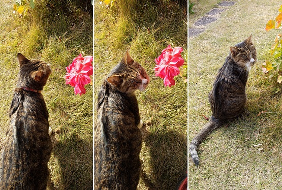 なんか夜寝るときの寒さに耐えられずとうとうお湯を沸かすタイプの湯たんぽを使い始めてしまいました。冬ですね(←今更~)というか今年は寒さが堪えるような気がする個人的感想。どうやって寒さを乗り切ろうかと考えている今日この頃です。猫は相変わらずマイペースで元気です。コタツの中や布団で過ごすことが多くなったのでそれなりに寒いとは思っているとは思うんですけどお外にも出たがるので意外と大丈夫なのかなという印象かな(分かんないけど)毛に覆われているので人間ほどは寒くないのかな。だとしたら羨ましい限りです。そんなある日のチビタちゃん・・・庭でゼラニウムの花を愛でていたそうです。さすがチビタちゃん情緒がありますね。猫と花、良きかなということでMHP2ndGは久しぶりに村のティガレックスを狩りに行って時間かかりすぎ、アイテム使いまくりでやっと倒したみたいな(疲労困憊)おかしいなぁ・・・前に集会所★7の「異常震域」クリアしてあるんだけど。また練習しないとね。そして、気を取り直して・・・雪獅子の鋭牙が欲しくてネコートさんの★8「ドドドドブランゴ」を周回してたんだけどやっと牙折ってクエストクリアして報酬画面を見たら鋭牙じゃなくて普通の牙しかなかったみたいな・・・・・・アイコンで出たと思って違ったときの絶望感。上位クエストで下位素材を出すの止めてほしいんですけどこういう設定考えた人・・・(以下略)でもあんなに怖かったドドブランゴだけどなんか結構大丈夫みたい。なんで大丈夫になったかがよく分からないけどこうして少しずつ謎に進歩していくものなのかもしれませんね。というわけで少しづつ狩猟生活は続く・・・
