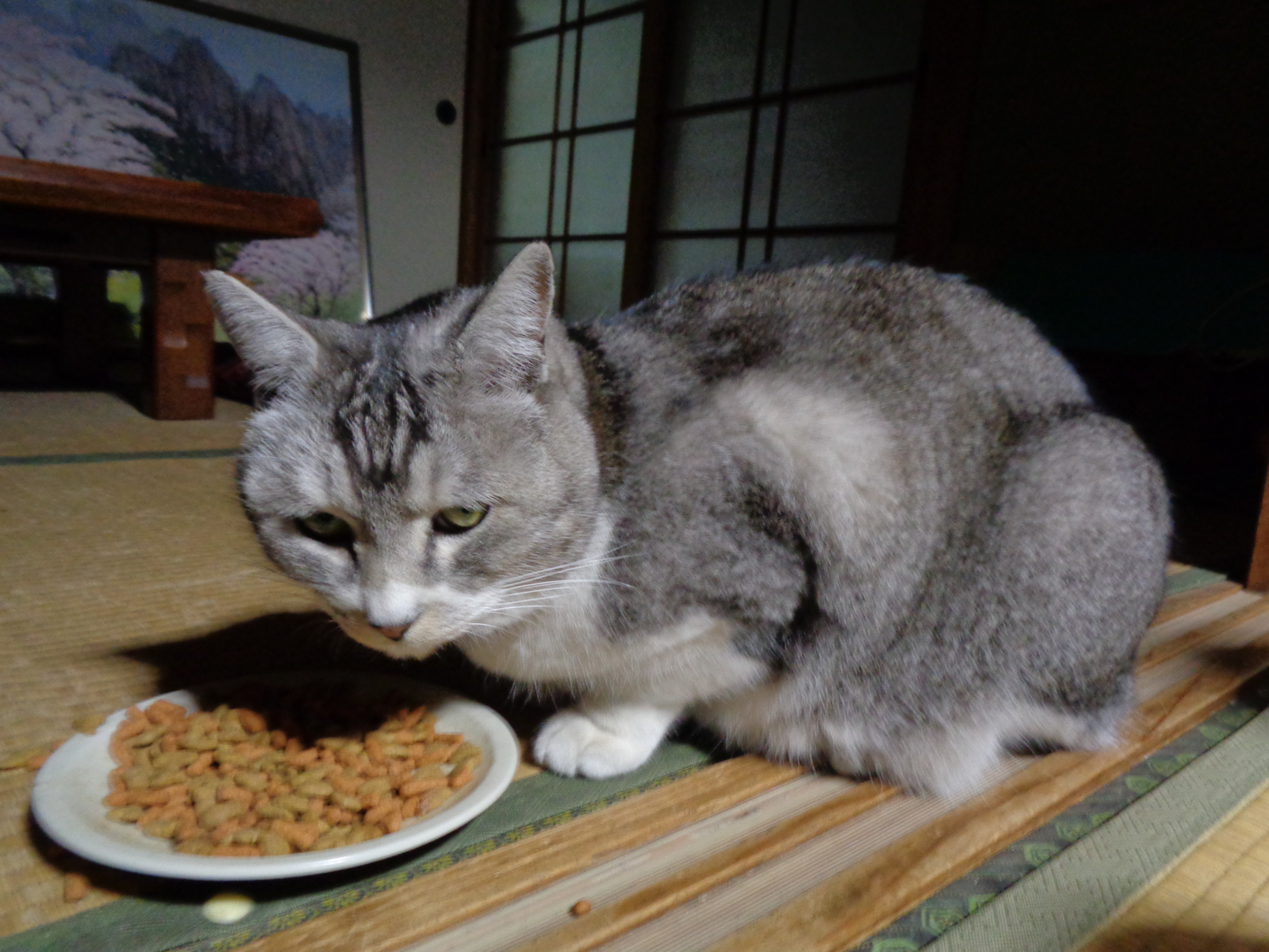 なんだかんだであっという間に大晦日ですね。そしてなんか妙に暖かい大晦日です。そのせいか家の中ちっちゃい変な虫が飛んでましたよ。寒くないのはいいことなんですけどね・・・なんか変なの。そういえば今年最後の日記ということでなんかいろいろ書きたいこともあったような気がしたけどあと数時間で年明けになっちゃうしもういいかなということで・・・猫たちに年末のご挨拶をしてもらいましょうか。ミゾさん、お食事中のところわるいですけど簡単にでいいのでご挨拶してもらえますか。ミゾ「今年はこれにて失礼しまつでち」簡単すぎ!まぁ猫は気紛れなので仕方ないですね。では代わりに私めから・・・今年もありがとうございました。マイペースなブログですが猫たちも頑張るそうなので(と言ってると思う)来年もよろしくお願いしますみなさまよいお年を余談だけどミゾの今年の流行語は「そういうわけではないのでち」私は「うそでしょ」これほんとよく言ってたような気がする。これもまた記録用の話ということで。来年はどんな言葉が流行るかな?おまけのゲーム的には今年はMHPと2ndGでしたかね。無印的には集会所の4本の角をクリアできたのが大きかったかな。なんかもうガツガツ進む感じゃなくて日課みたい(?)になってる感じだけどそれもまた楽しかなということで・・・ハンター生活は続く・・・FF15はあんまり出来てなかったけどこちらもまた旅は続く・・・ということで。あとこれは今年最後の余談なんだけど日記を「公開する」をポチしたら更新にならずに消えちゃいましたよ。なんか「復元する」って出てきたので下書き復活できたけど・・・なんか怖いんですけどこういうサプライズは要らないと思った記録用の話ということで。