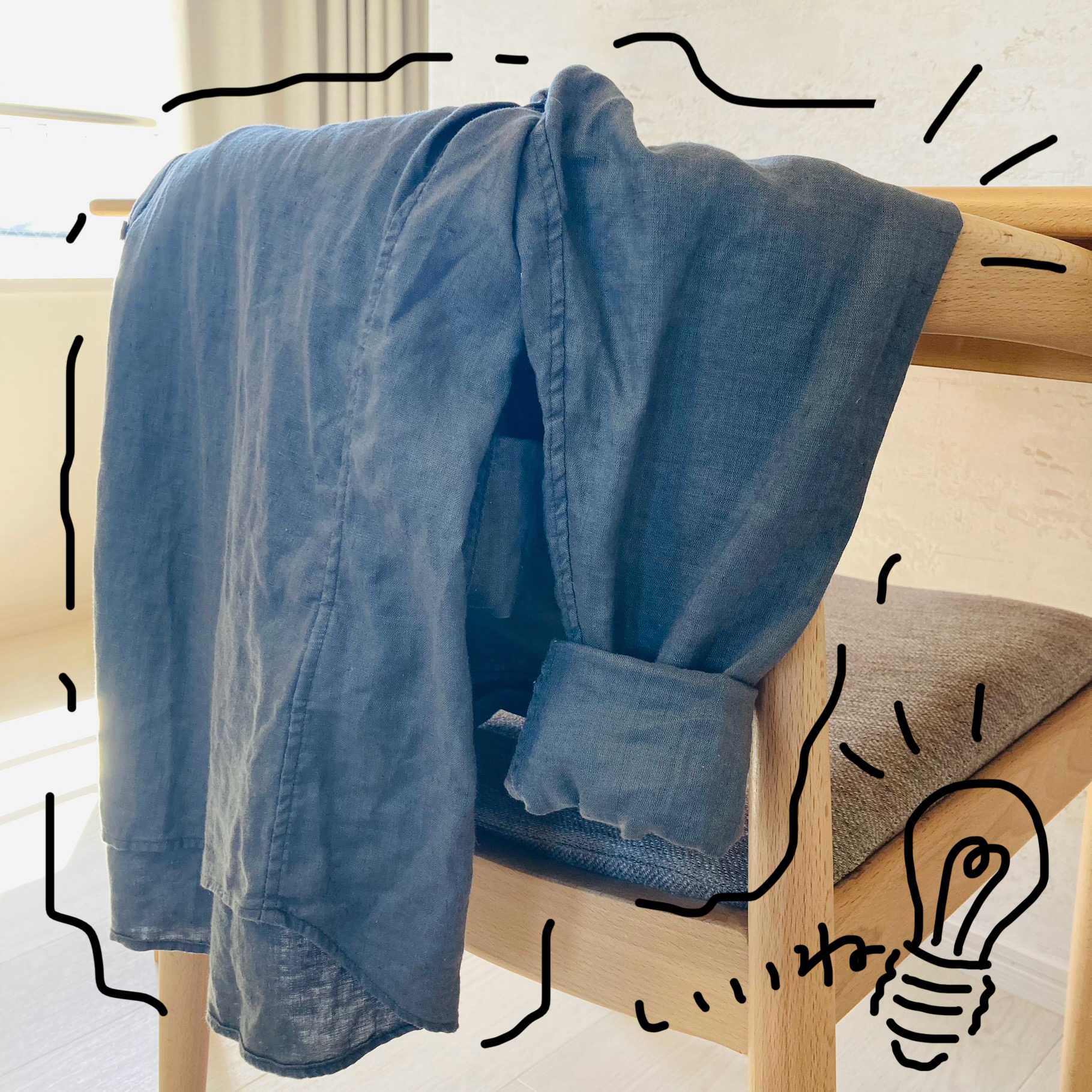土で汚れてしまうので、手に取りやすい価格のユニクロのリネンシャツを着て草むしり作業をします。