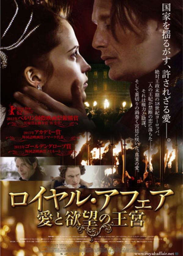 ダウントンアビーを観てから、貴族映画にハマっています。(^^) 色々見た中で良かった映画が「ロイヤルアフェア」です。 日本では2013年に上映されたみたいですね。 ネタバレすると見たことない方は面白くなくなると思うので、詳しくは紹介しませんが、 この映画のストーリー、本当にあった話なんですよ!私には、ちょっと衝撃でショッキングでした。 ストーリーも良いですが、貴族の身につけているものや宮殿、庭園なども見入ってしまいます。 本当に過去にこんな生活をしている人達がいたんだな〜と(^^;; フランスのベルサイユ宮殿は有名ですが、こちらの映画の舞台はデンマーク王室なんです。 王妃役は、アリシア・アマンダ・ヴィカンダーという可愛らしいスウェーデン出身の女優さんです。 実在した王妃はこちら↓ 名前は、カロリーネ・マティルデ・ア・ストアブリタニエン。 15歳で結婚し、23歳という若さで亡くなっています。 デンマーク国王役は、ミケル・ボー・フォルスゴーという俳優さんです。 デンマーク出身で31歳らしい。 こちらの映画で男優賞を獲得しています。 実在したデンマーク国王はこちら↓ クリスチャン7世です。 統合失調症という深刻な精神病に悩まされていたそうです。59歳で亡くなられています。 クリスチャン7世の侍医になったストルーエンセ役は、マッツ・ミケルセンさんです。 デンマーク出身の50歳。 魅力的な方で、引き込まれました〜。 実在したクリスチャン7世の侍医↓ ヨハン・フリードリヒ・(フォン・)ストルーエンセさんです。 35歳という若さで亡くなられました。 この話は、18世紀後半のフランス革命の直前くらいの時代だそうですね。 この頃の人達の思想や暮らしを少し勉強し、想像するとより深く味わえる映画だと思います。(*^^*)
