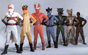 懐かしの空想特撮ヒーロー物のカルト番組「レインボーマン」(スカパーのファミリー劇場で放送中)が第2クールに入っています。 (レインボーマン。水谷氏本人が演じるダッシュ7(左端)と1~6の化身)日本壊滅をもくろみ、人間を狂わせるキャッツアイという薬を日本人に無差別投与しようとする「死ね死ね団」と、それを阻止しようとするレインボーマン(ヤマトタケシ)との攻防を描いた「キャッツアイ作戦」編から、「死ね死ね団」が日本経済を混乱に陥れ、レインボーマン抹殺へたくさんの怪人、魔女を送り込む「M作戦」編に移りました。「レインボーマン」は全52話、第4クールまであり、その中でも「M作戦」編は最も人気の高いシリーズではないでしょうか。新興宗教の「御多福会」(おたふくかい)をダミーに、偽札を大量に流通させ、日本国内を超インフレにさせるという「死ね死ね団」の高度な作戦は、子供の頃は理解できませんでした。超インフレの結果、街には、ゾンビのように浮浪者があふれ、食料を奪い合います。また、レインボーマンを付け狙うアマゾンの魔女「イグアナ」を塩沢ときが怪演。チープで間抜けな怪人もたくさん出てきます。このあたりのギャップも今となっては見所です。レインボーマンが、その格好のまま国会を訪ね、大臣に対し、困窮する国民に食べ物を提供するよう嘆願する伝説のシーンもあります。さらに「死ね死ね死ね」を連発する挿入歌「死ね死ね団の歌」が何度も流れます。レインボーマンは、ヤマトタケシ役の水谷邦久氏自ら演じるダッシュ7(太陽の化身)が、ダッシュ1から6まで、状況に応じて変身するというのが特徴ですが、今見ると、ダッシュ1~6までいずれも頭が大きいです。ヘルメット状の仮面の中に頭を入れるのですから、当然ではあります。子供の頃はダッシュ5(黄金の化身)が一番好きでした。「M作戦」編、必見です。