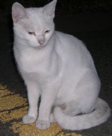 昨夜のことです。駐車場に愛車フェラーリロードスターを止めて、降りると、いつものように野良猫シロが出迎えてくれました。 ふだんはシロはそのまま家の裏側に回り、私からごはんをもらうのですが、たまたま昨夜は、私が玄関のドアを開けた時に、するりと玄関に入ってしまいました。玄関では愛猫アイリスが出迎えてくれていて、アイとシロが予期せぬご対面です。シロには悪いのですが、感染症に罹っていることも考えられ、アイと接触させたくはありません。また、アイはああ見えても気が強く、いつもお世話になる床屋さんの巨大な看板猫ゴンに対しても「シャー」と激しく威嚇して、追っ払ってしまう程なのです。「まずい」と思った瞬間に、アイとシロが顔を近付けて、「鼻チュウ」をしました。ほんの少しの間だったということもあり、けんかすることもなく、私はすぐにシロを外に出しました。写真を撮れなかったのが残念です。その後、家の裏側に回ったシロに、ドライフードをたくさんあげました。ブログランキング