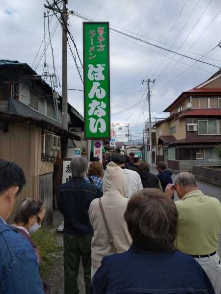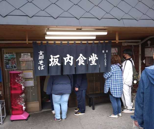 午前6時半過ぎに店の前に行くと、既に30人くらいが並んでいました。開店は午前7時。土曜日の朝とはいえ、坂内食堂の人気、恐るべしです。駐車場に止まっている車は、多くが関東や東北他県のものでした。