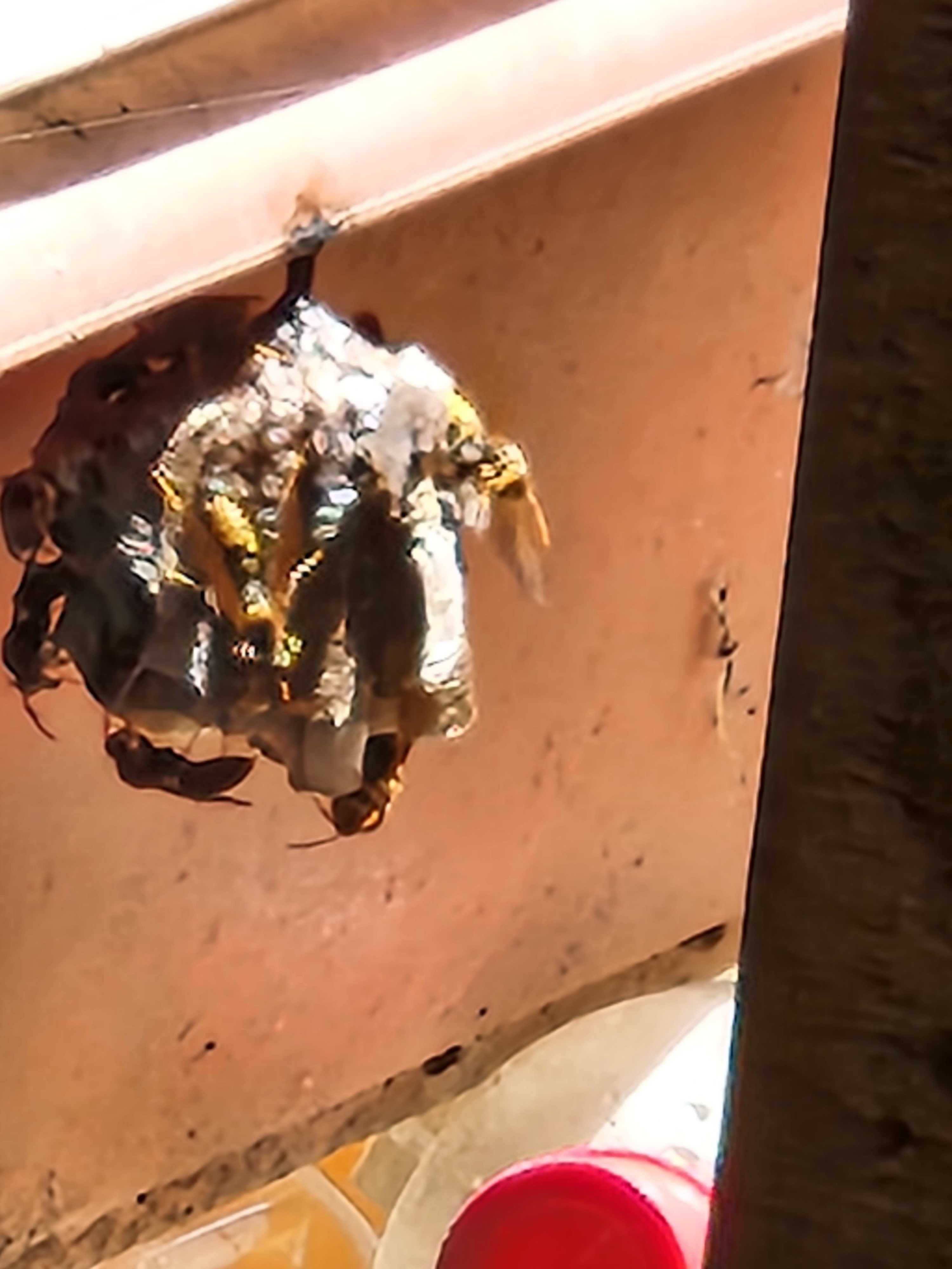 まさか、洗濯干し場のとこに、蜂が巣を作りかけてるとは思いませんでした