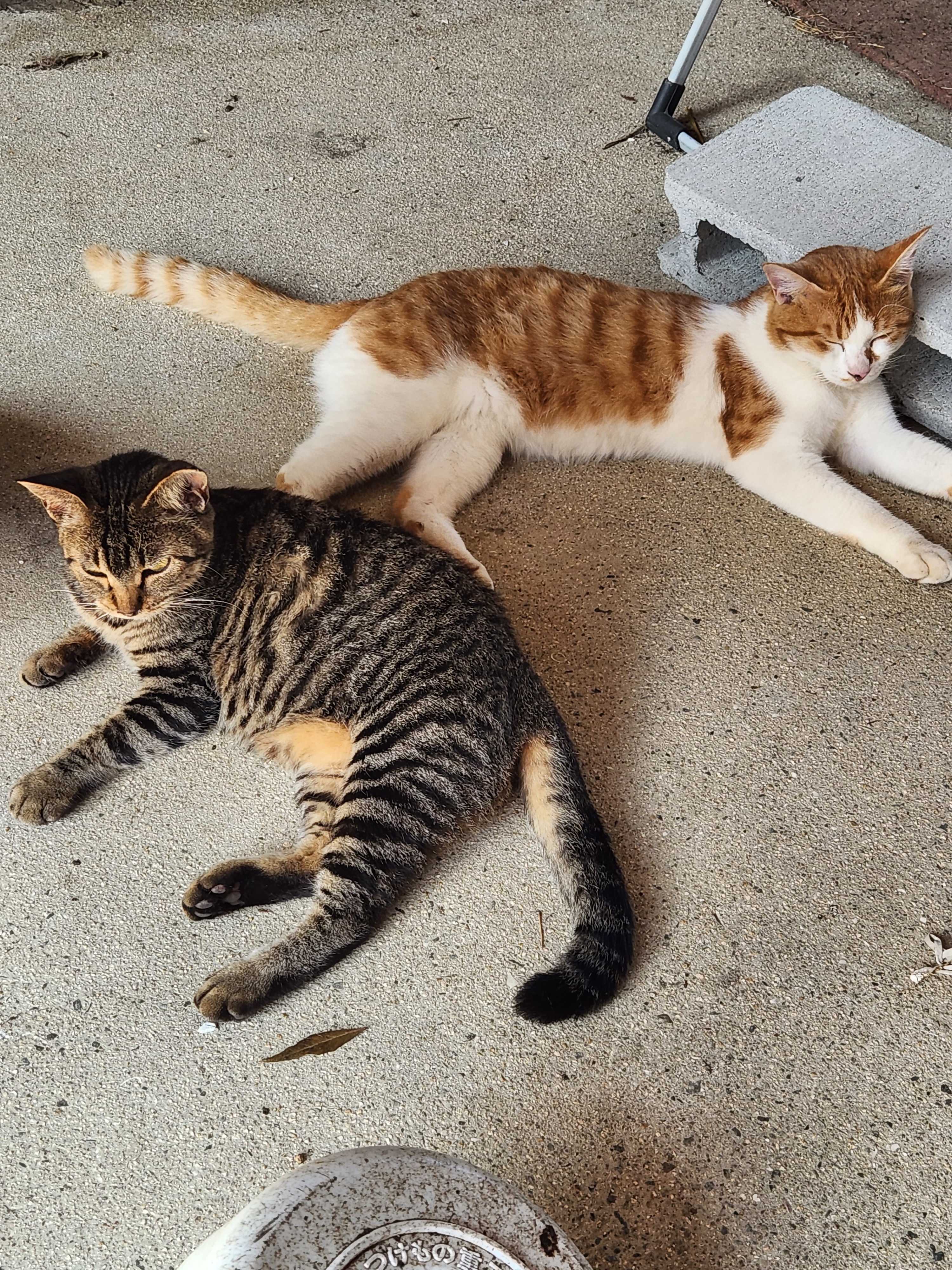 オス猫2匹の喧嘩、関係なく親子している2匹です