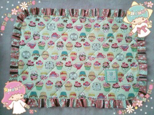 昨日も今日も、仕事がなかなか終わらず…昨日は寝る時間も取れず。 今日は朝仮眠して、さっき終了… 明日は普通に終わって普通に寝れるかな…? カフェマット、結局ステッチかけました。 キルティングなどというたいそうな言葉は使えないけれども(笑) タグを避けたらこんな感じになりました 9cm間隔です。 ステッチかけた方が可愛いかも?
